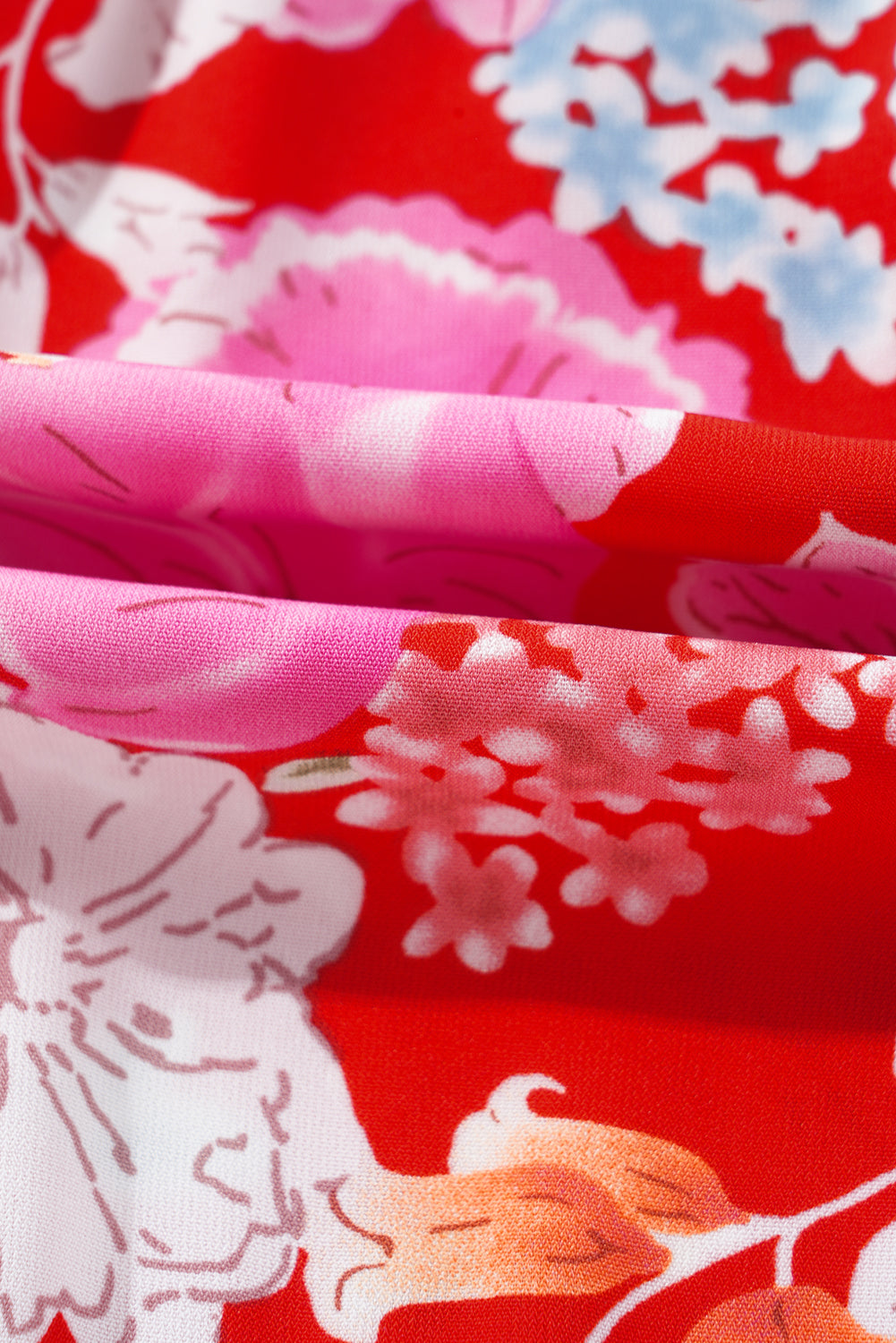 Red Floral Print High Waist V Neck Babydoll Mini Dress