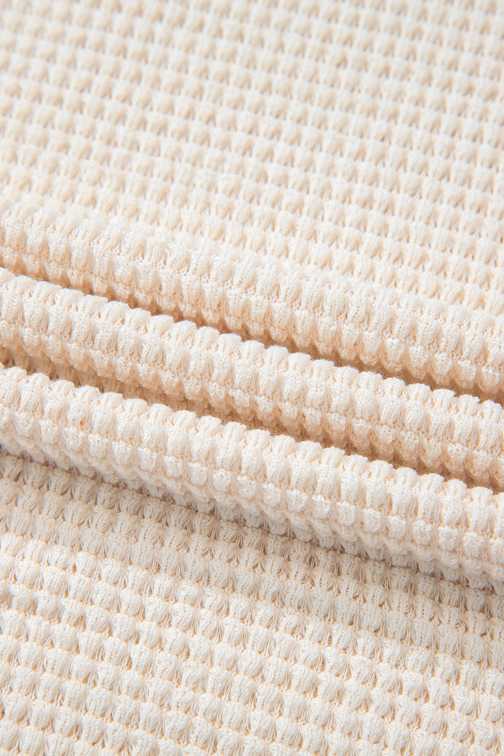 Beige Waffle Exposed Seam Detail Plus Size Short Sleeve Top