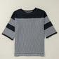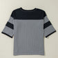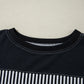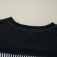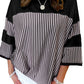 Black White Striped Patchwork 3/4 Sleeve Oversize Top