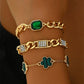 Gold St Patrick Gem Rhinestone Decor Adjustable Layered Bracelet