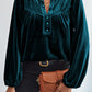 Skobeloff Lantern Sleeve Beaded Split V Neck Velvet Top