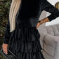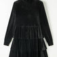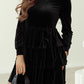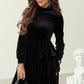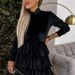 Black Velvet High Neck Tiered Ruffle Mini Dress