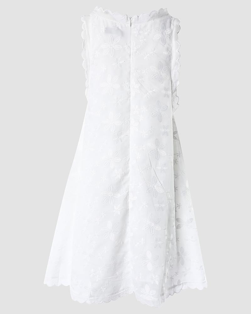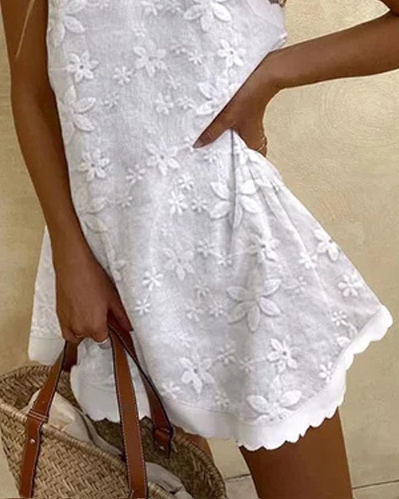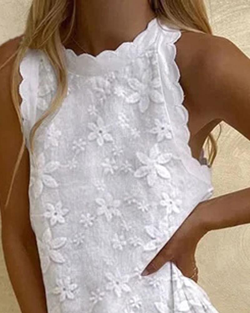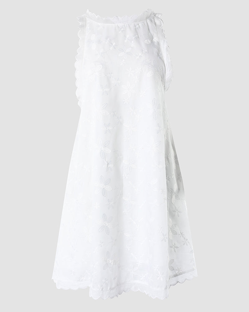 Embroidery Floral Scallop Trim Sleeveless Casual Dress