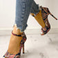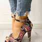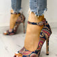 Ethnic Print Peep Toe Ankle Strap Thin Heeled Sandals