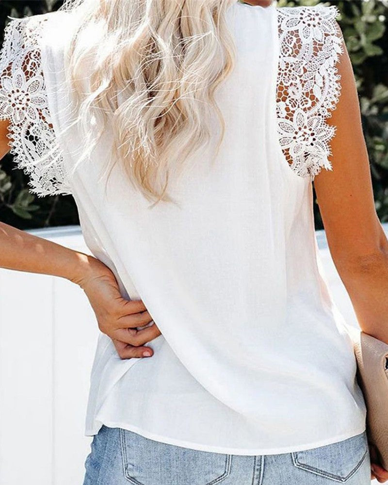 Eyelahs Lace Sleeve V Neck Top