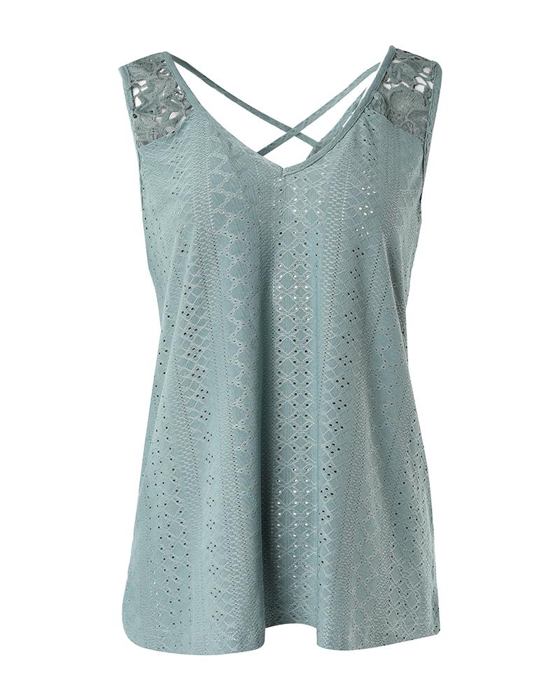 Eyelet Embroidery Crisscross Lace Patch Tank Top