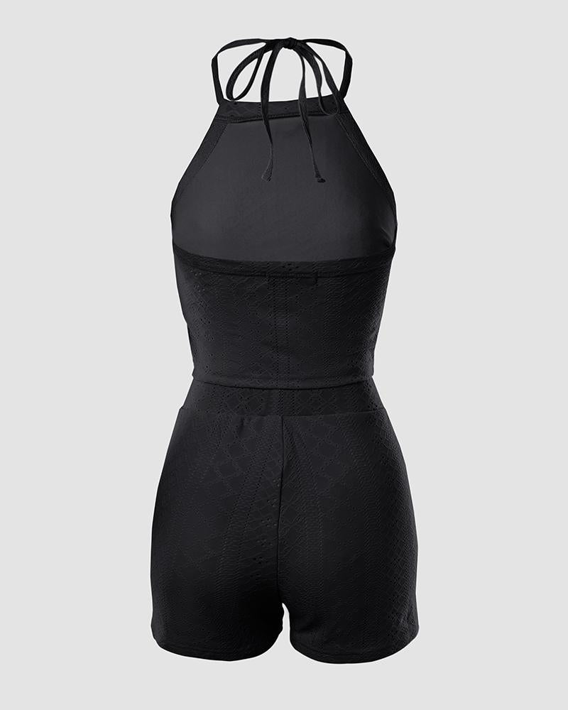Eyelet Embroidery Crop Top & Drawstring Shorts Set
