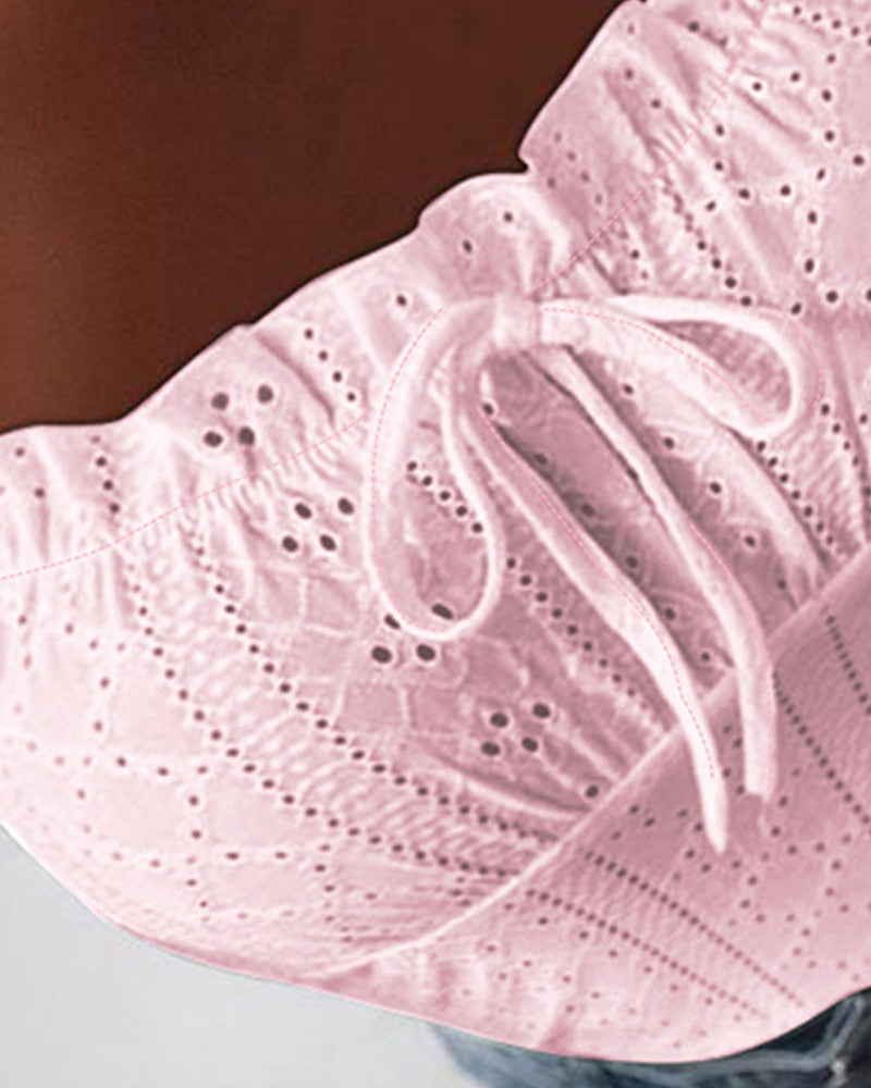 Decoration:Eyelet Embroidery,Frill Hem,Tied Detail