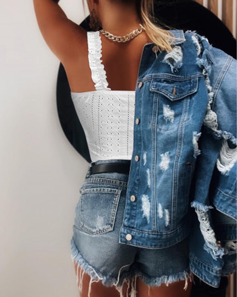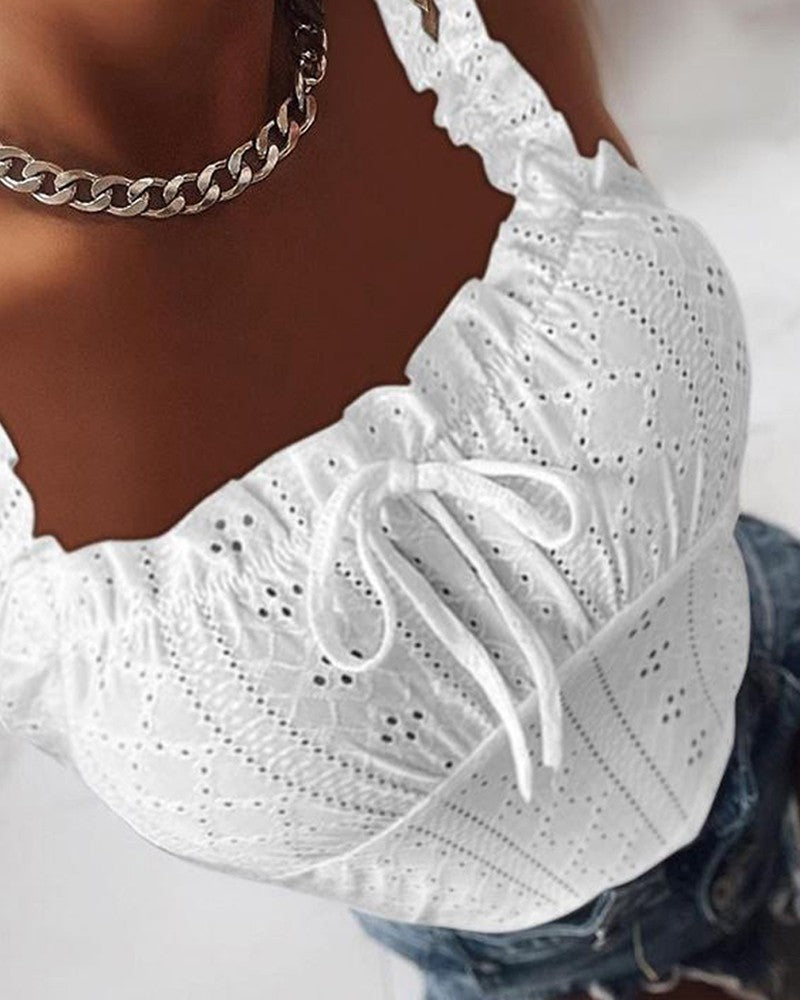Decoration:Eyelet Embroidery,Frill Hem,Tied Detail
