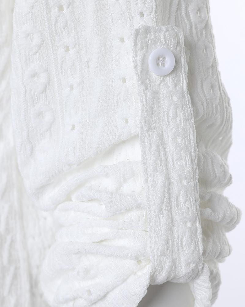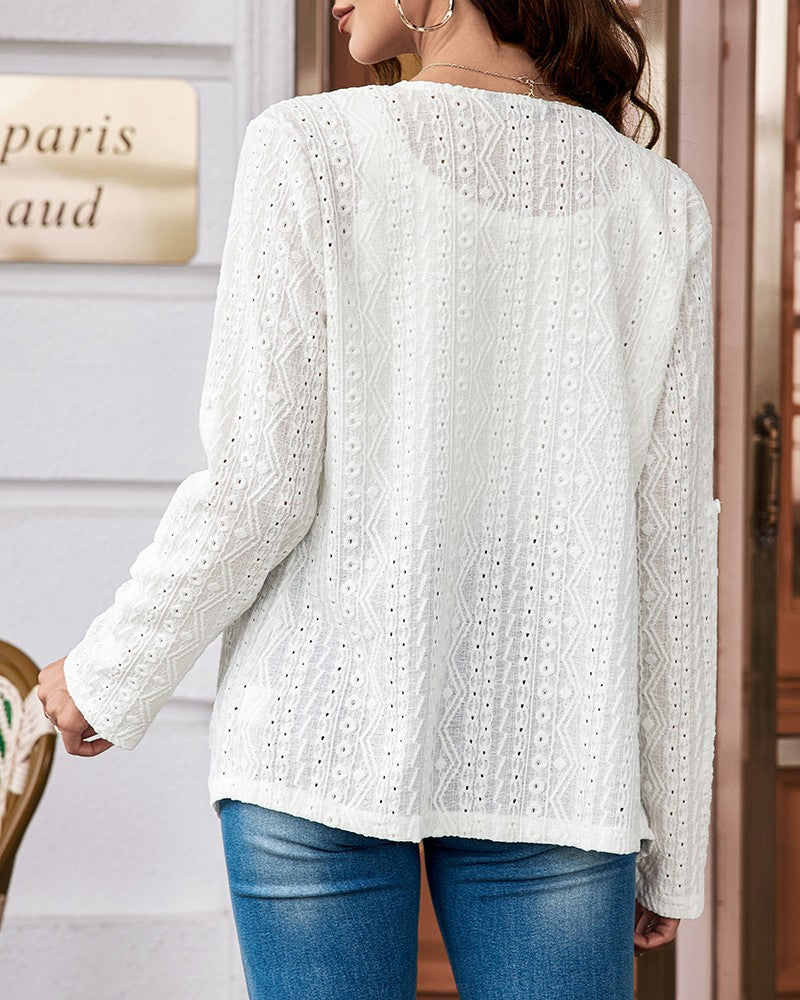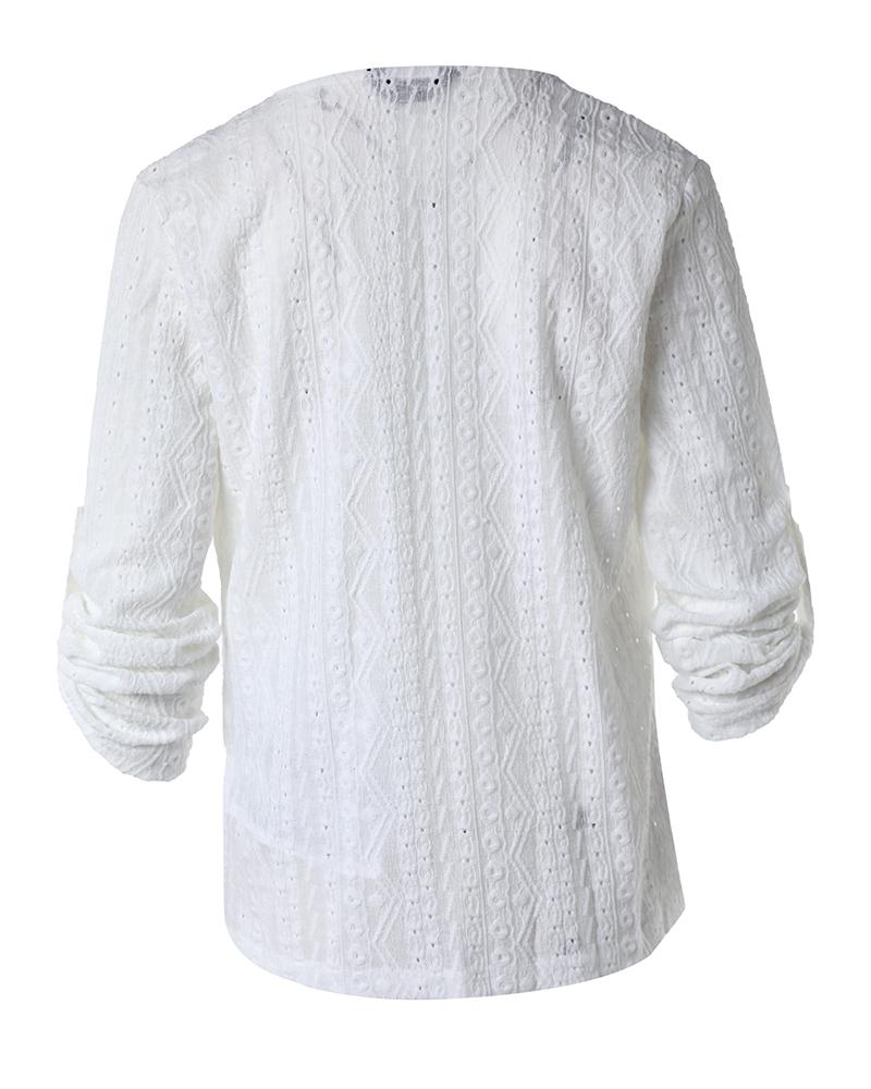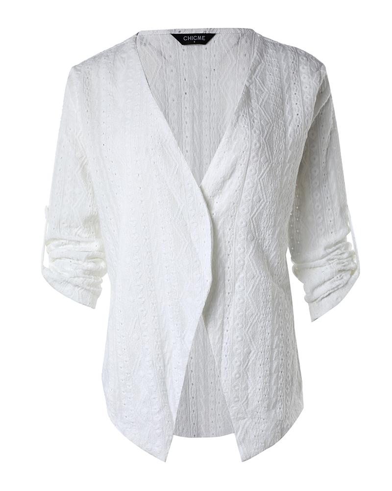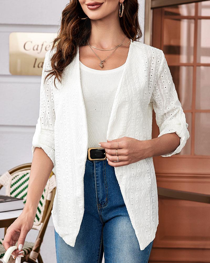 Eyelet Embroidery Roll Up Sleeve Open Front Coat