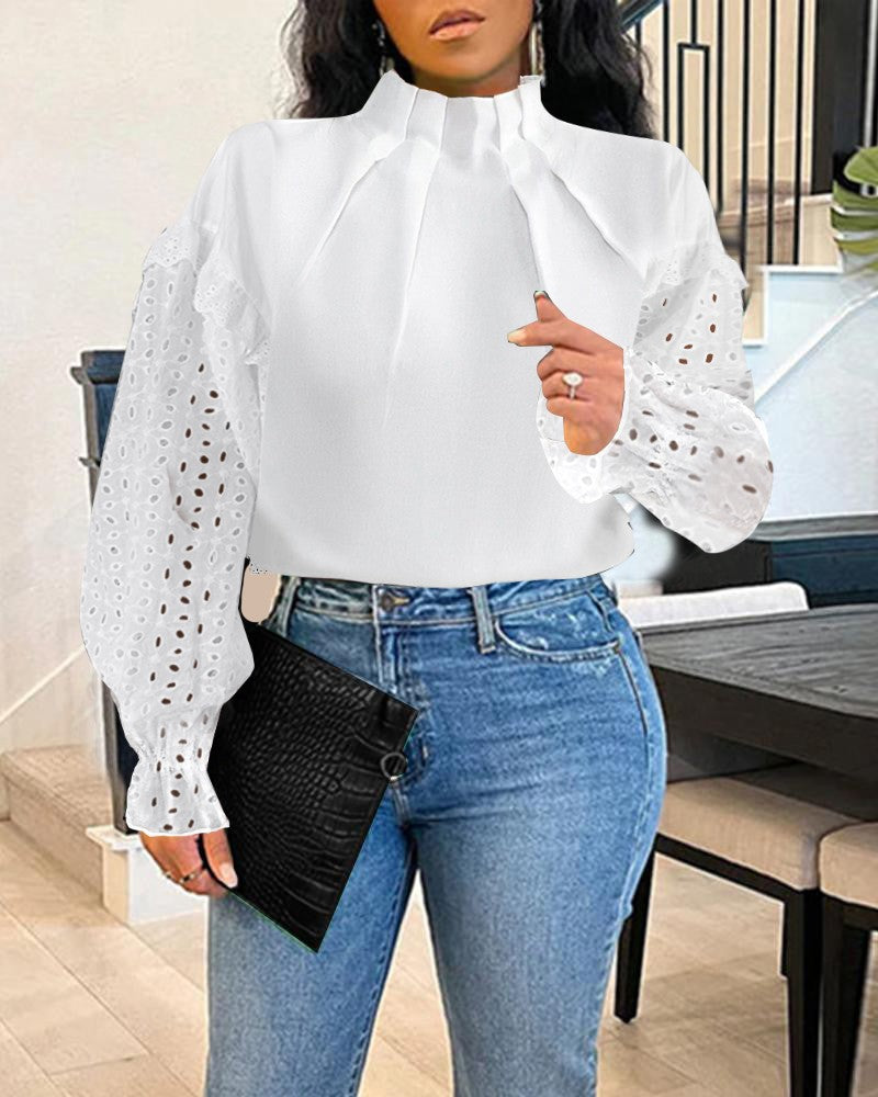 Eyelet Embroidery Ruched Lantern Sleeve Top