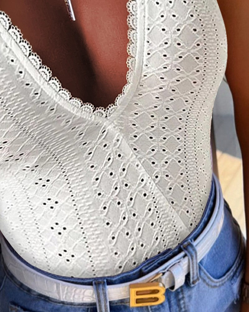 Eyelet Embroidery Sleeveless Lace Patch Top