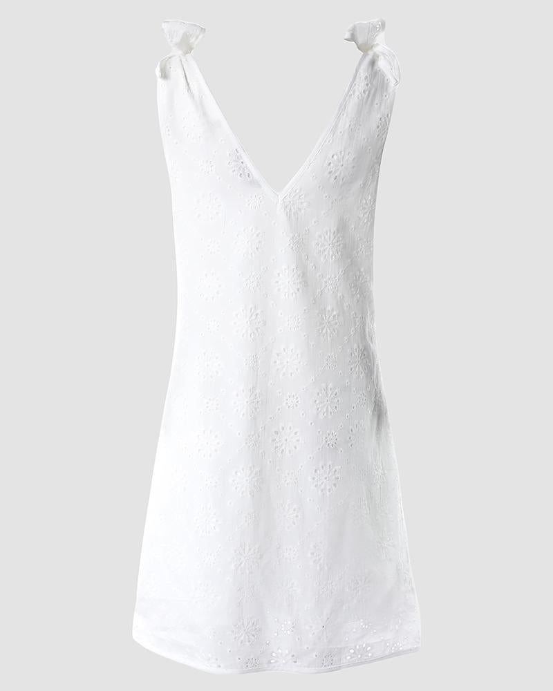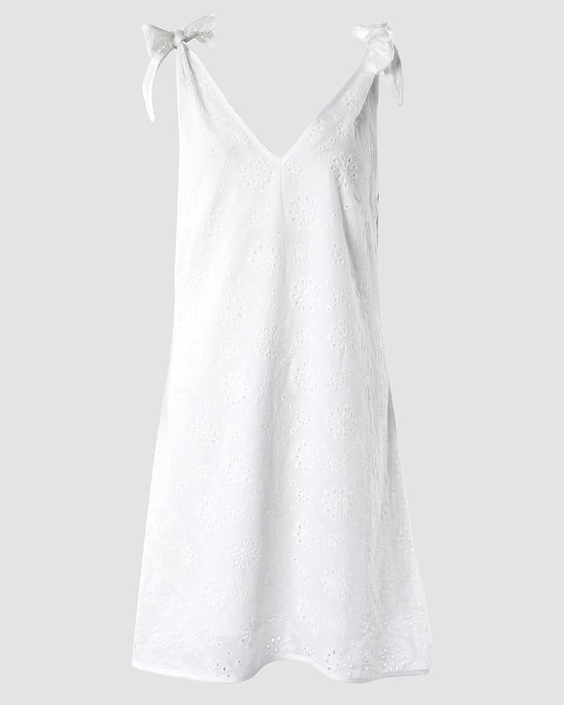 Eyelet Embroidery Tied Detail Sleeveless Casual Dress