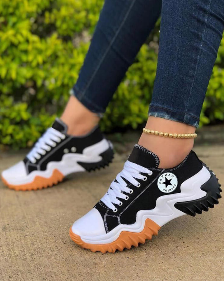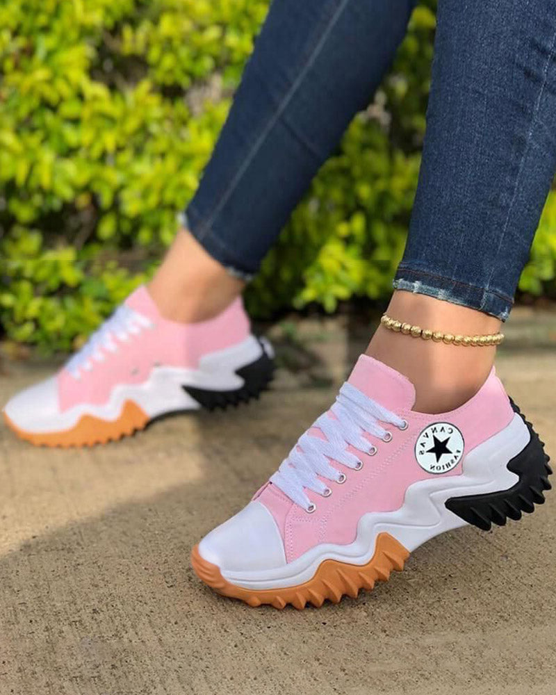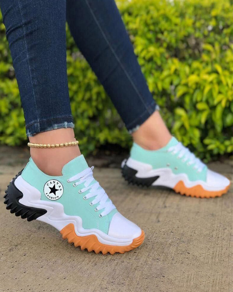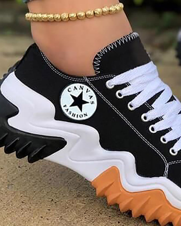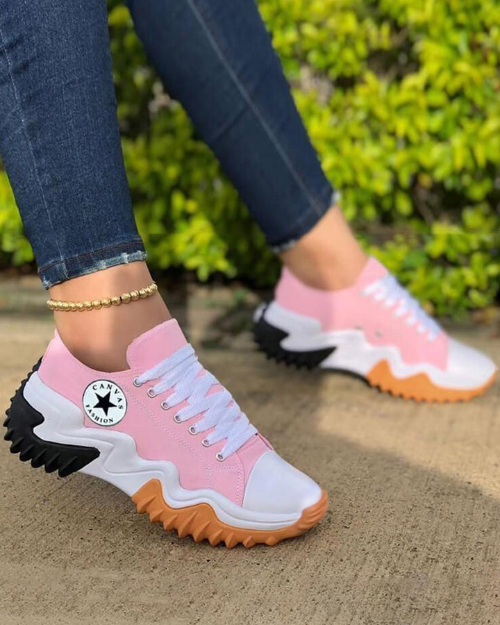 Eyelet Lace up Contrast Paneled Muffin Sneakers