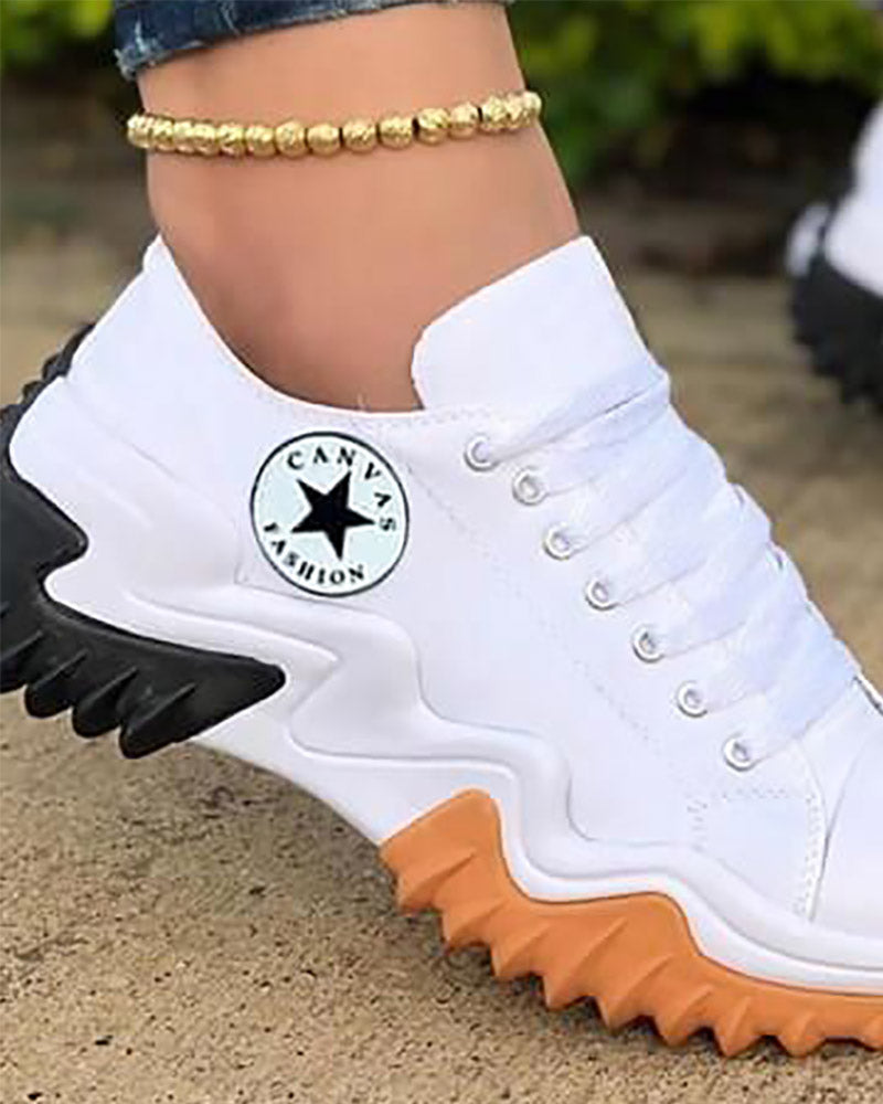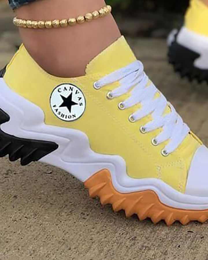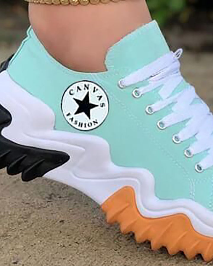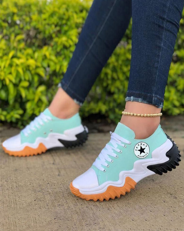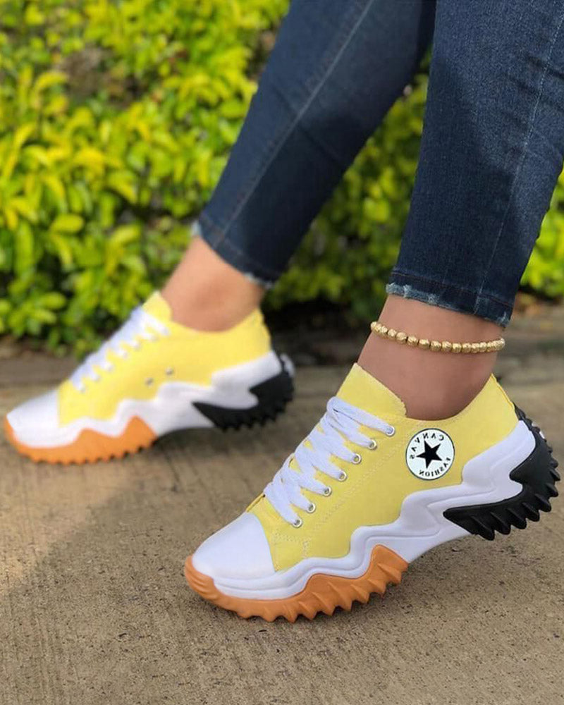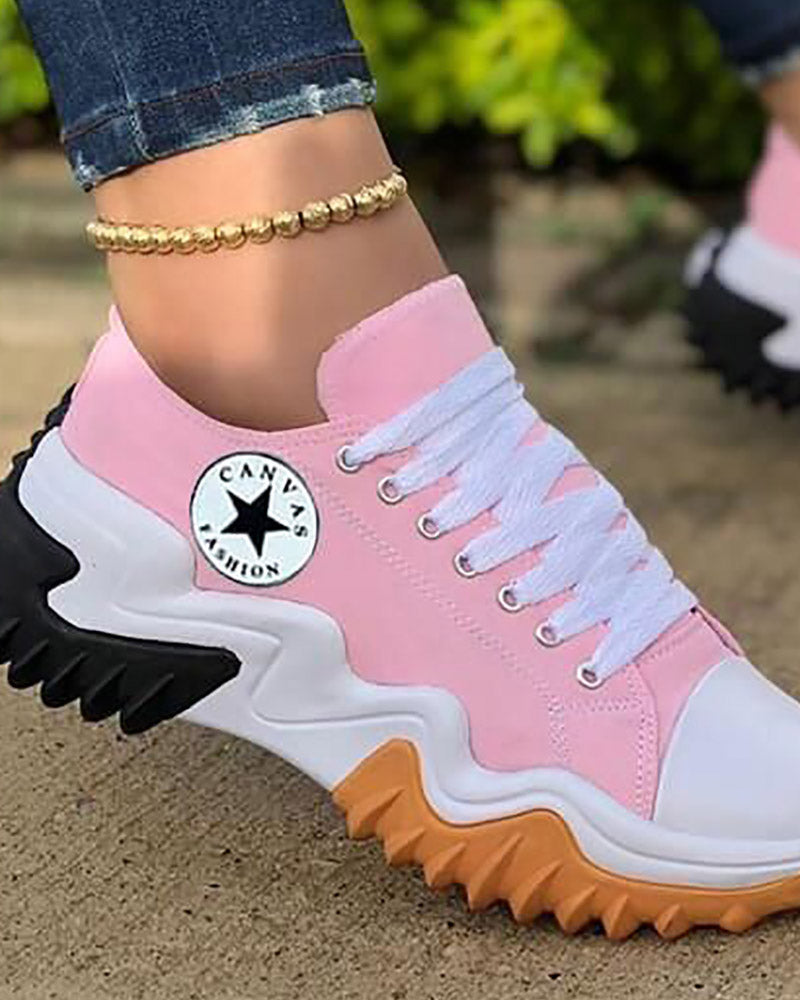 Eyelet Lace up Contrast Paneled Muffin Sneakers