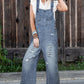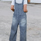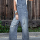 Stone Blue Distressed Bib Pocket Wide Leg Denim Overall