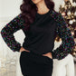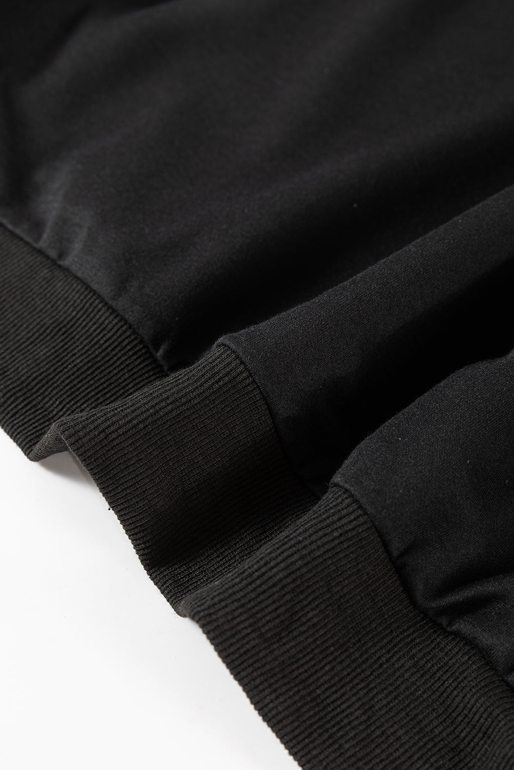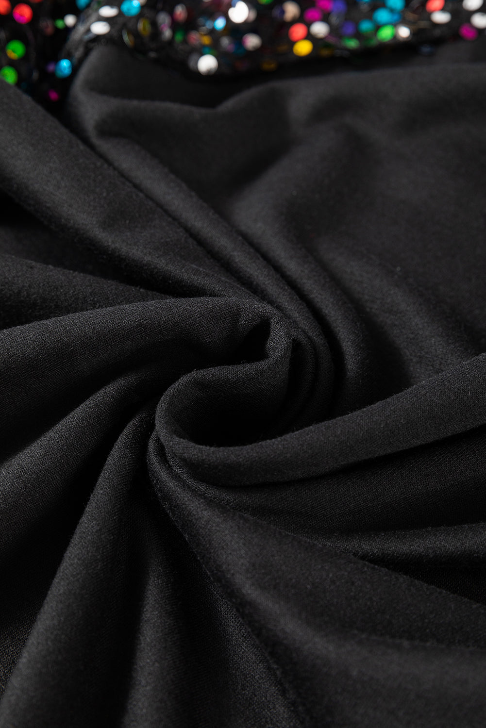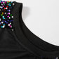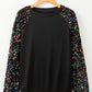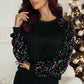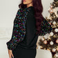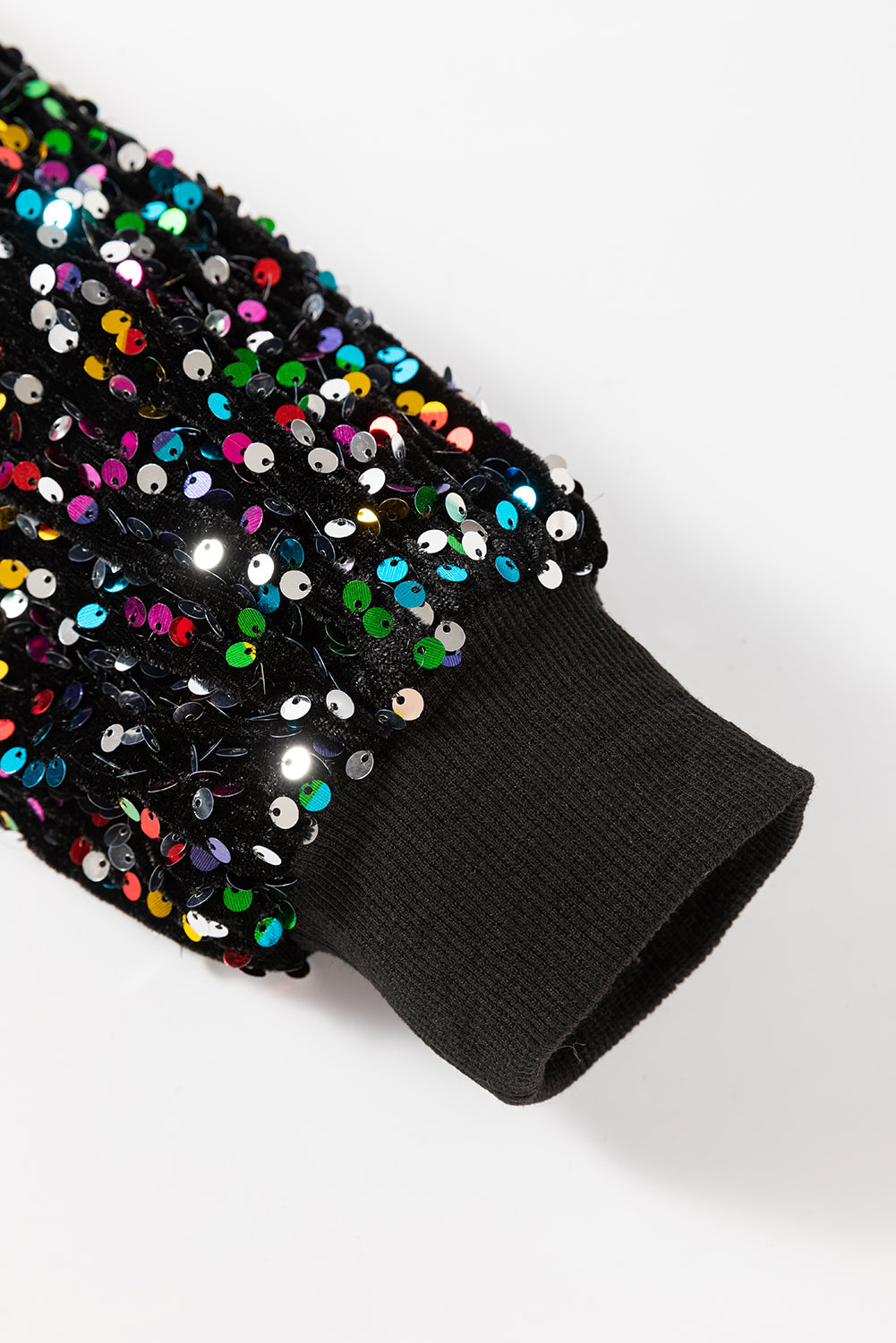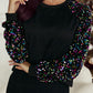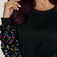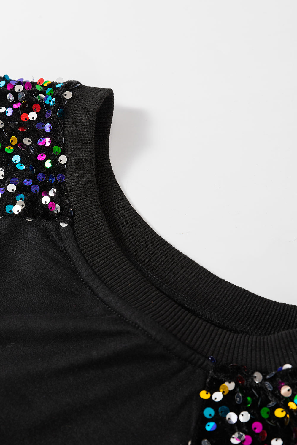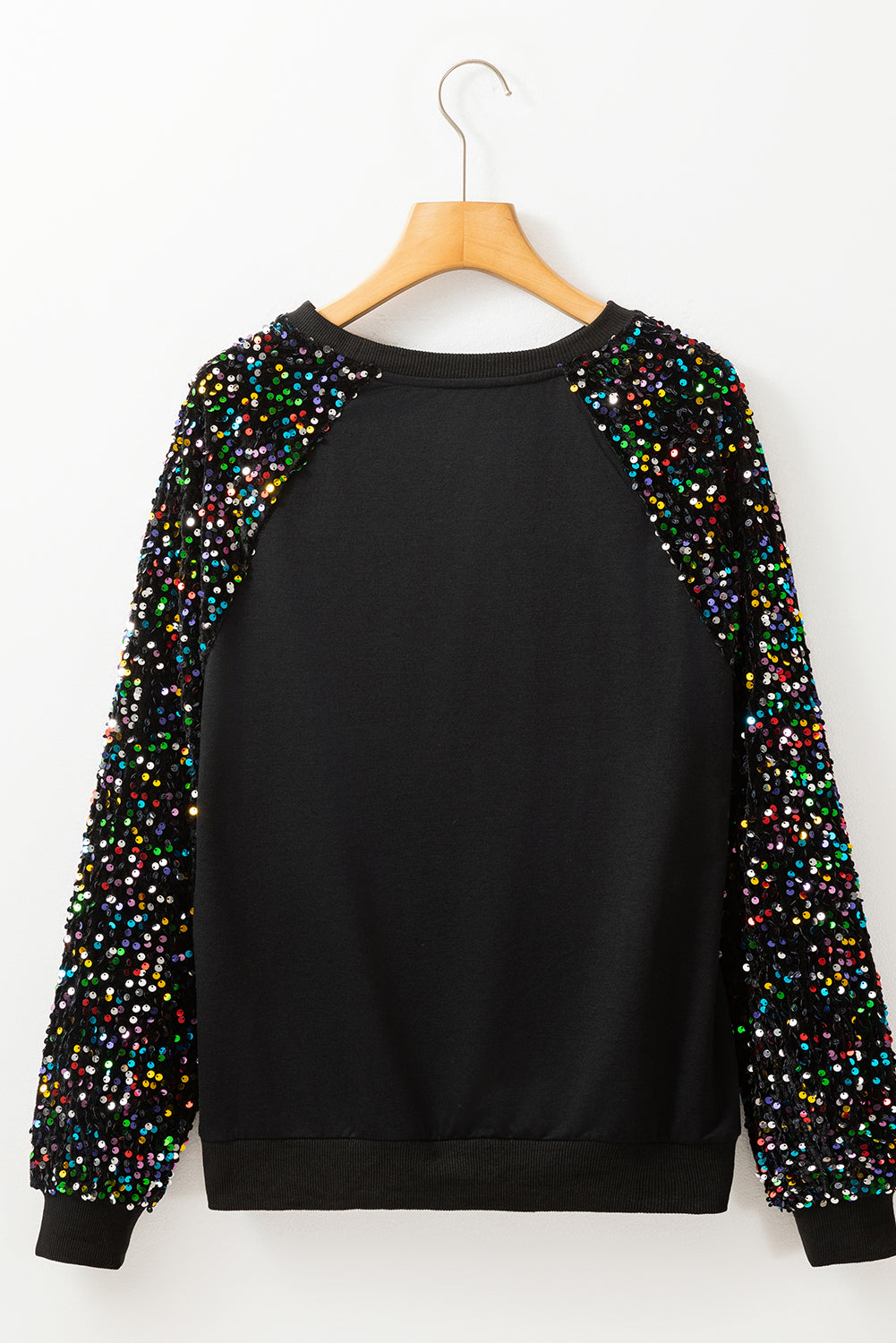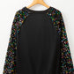 Black Sequin Raglan Sleeve Crewneck Pullover Sweatshirt