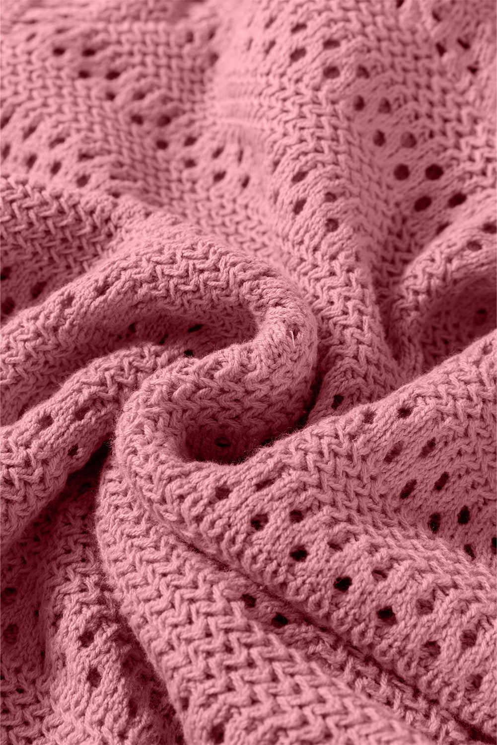 Peach Blossom Pointelle Knit Raglan Sleeve Hooded Sweater