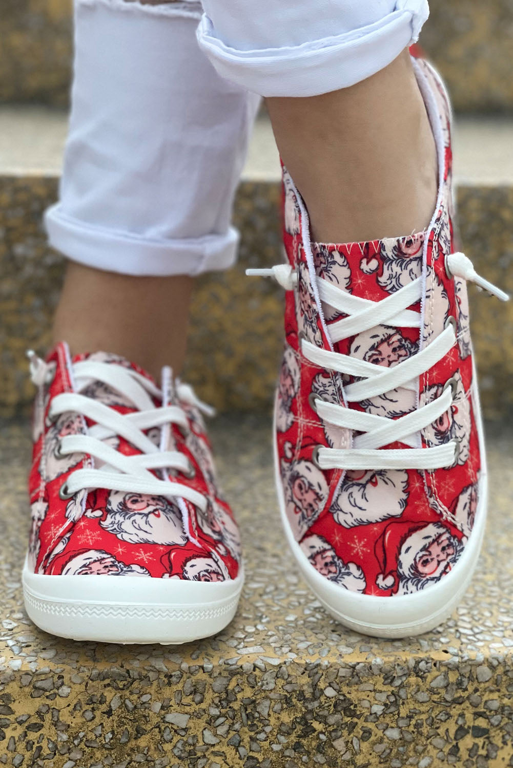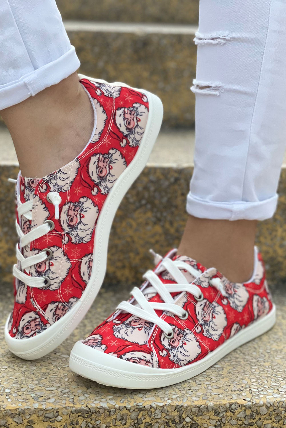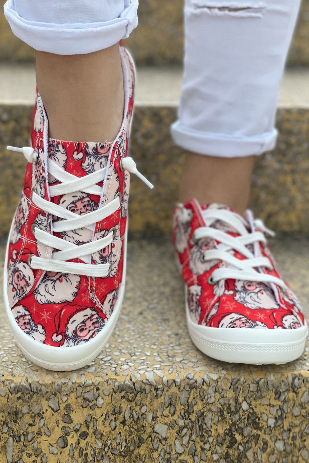 Fiery Red Christmas Santa Print Lace Up Flat Shoes