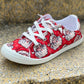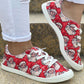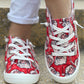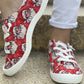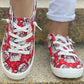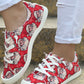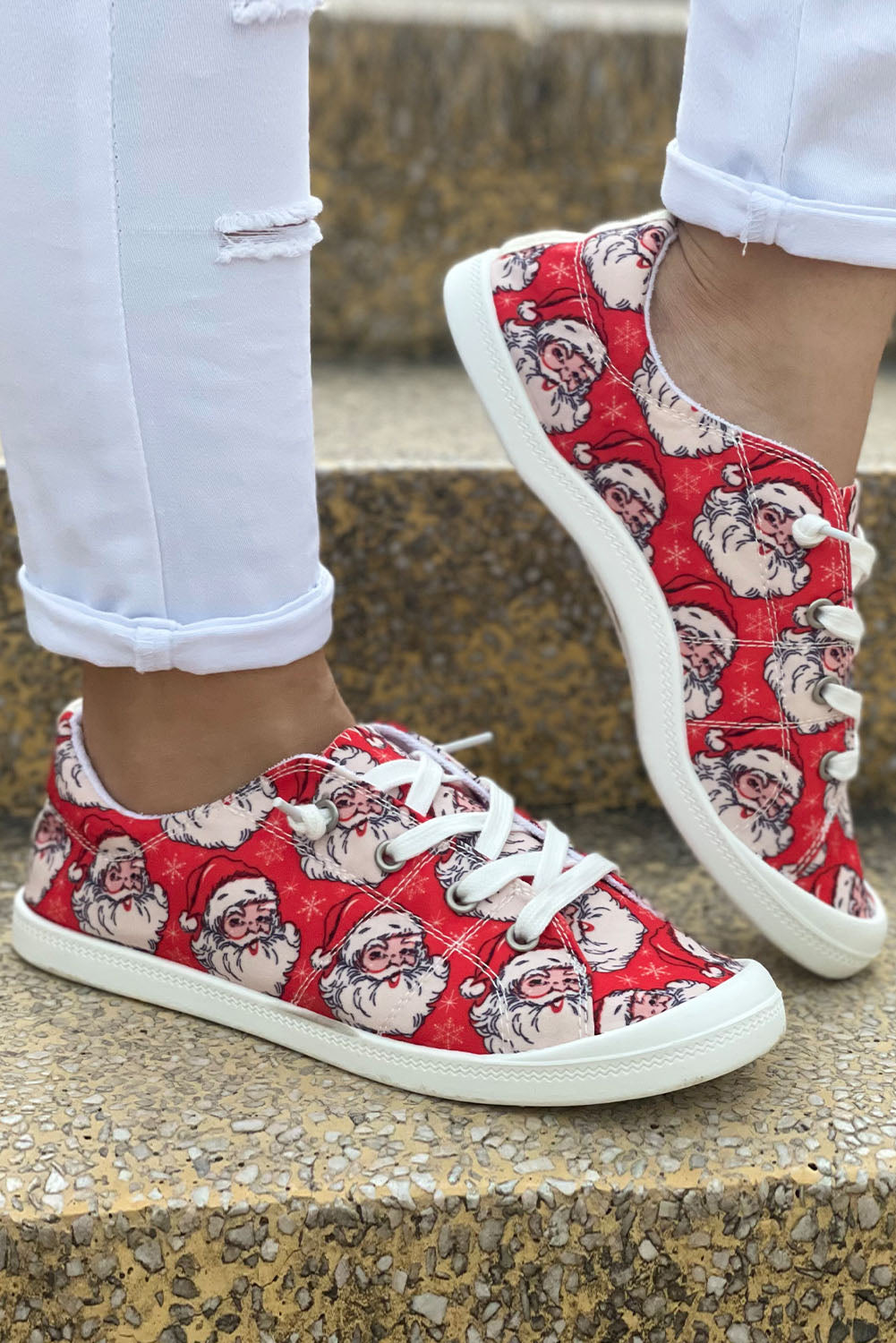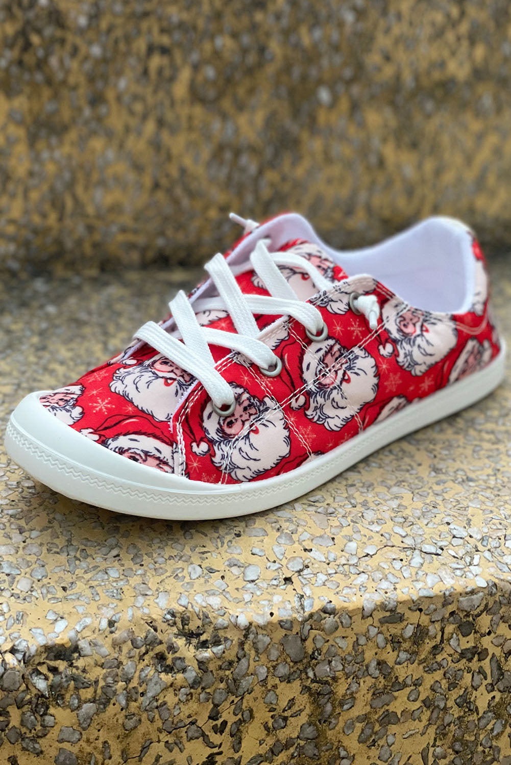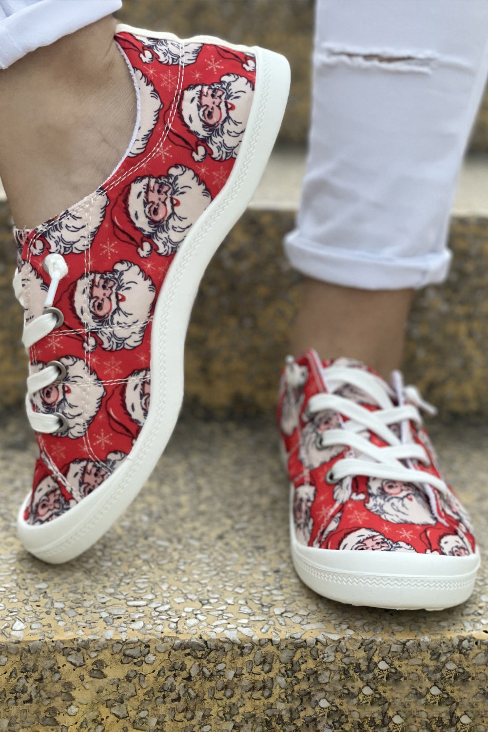 Fiery Red Christmas Santa Print Lace Up Flat Shoes