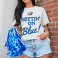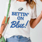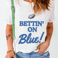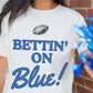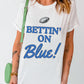 White Rugby Football BETTIN ON Blue Graphic Crewneck T Shirt