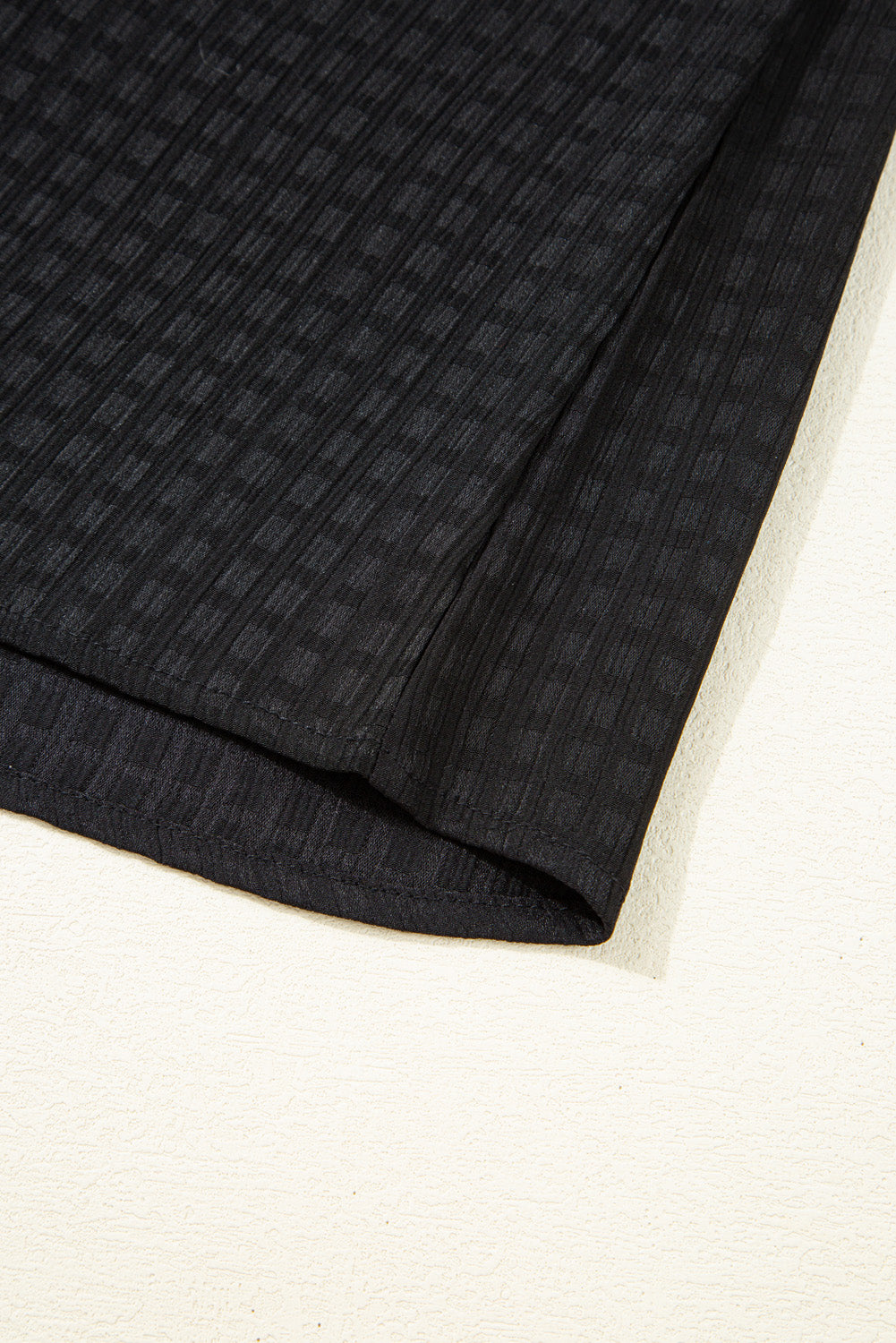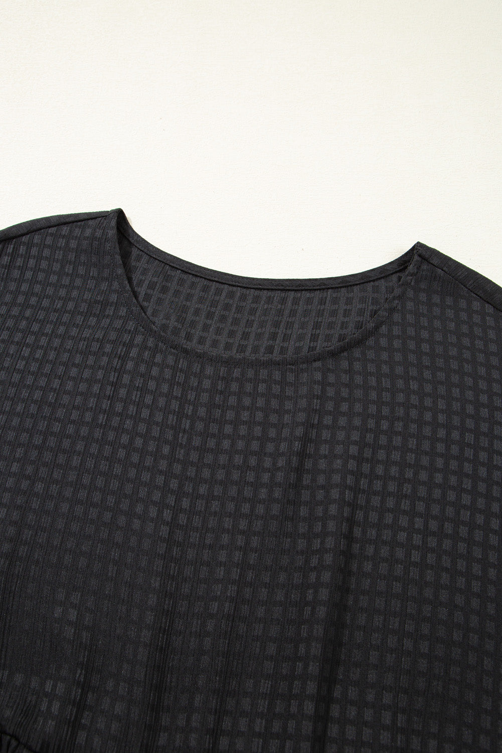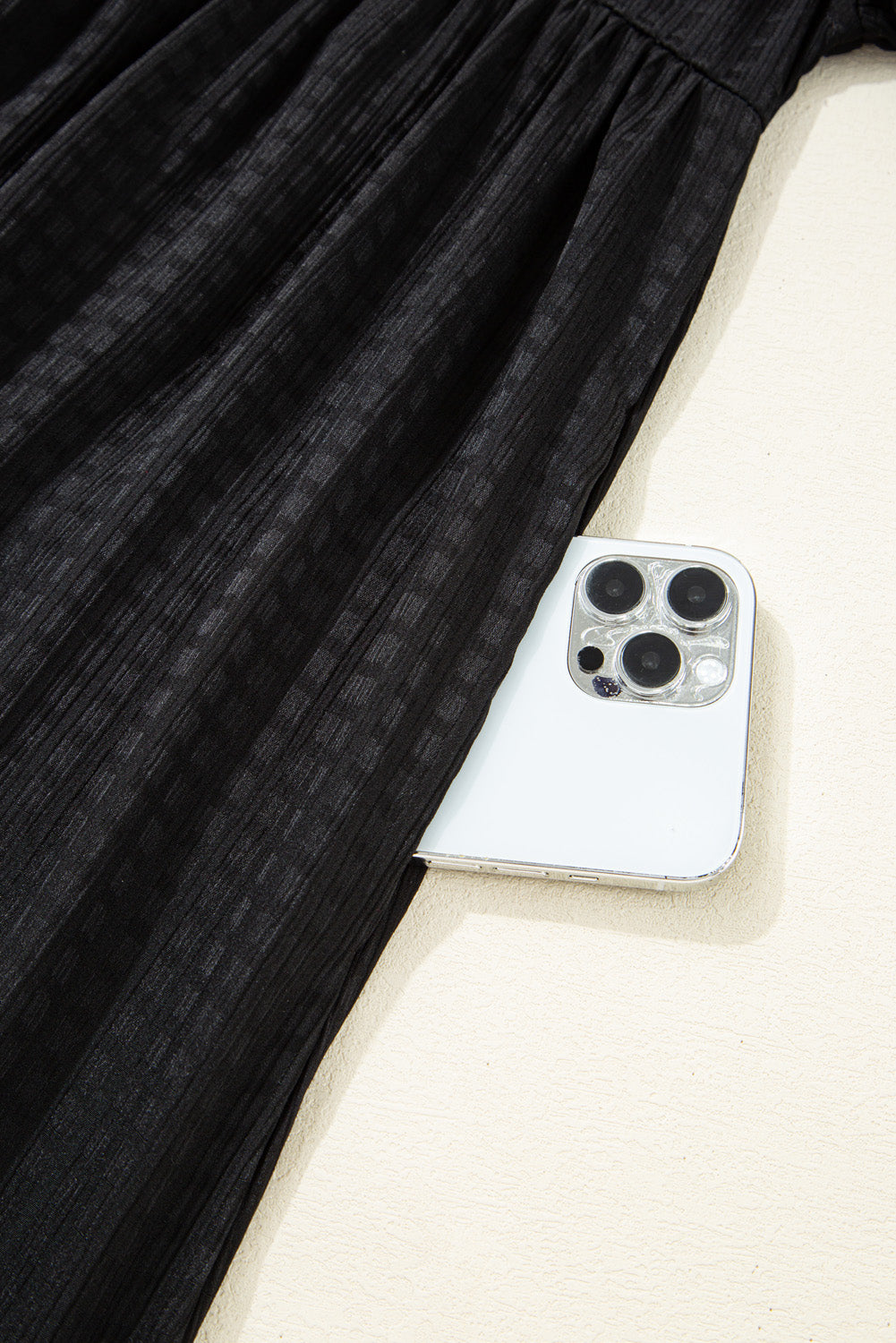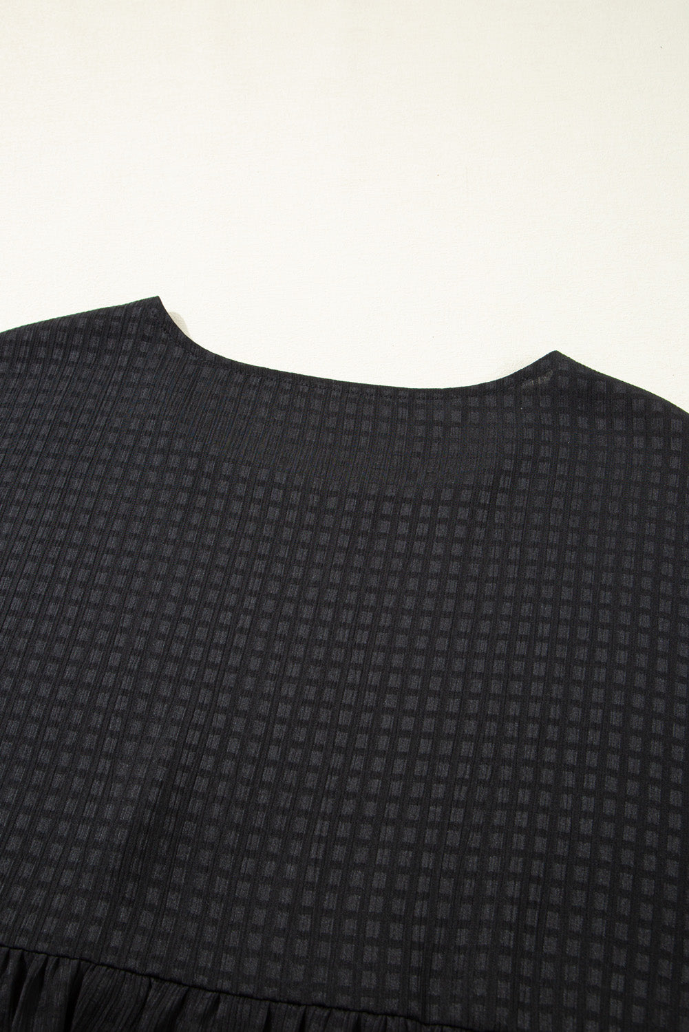 Black Textured Ruffled Sleeve Babydoll Plus Dress