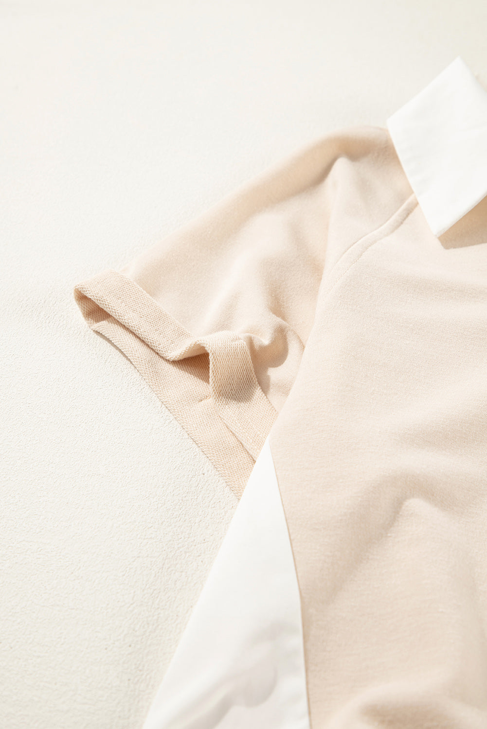 Jet Stream Shirt Collar Buttoned Patchwork Short Sleeve Mini Dress