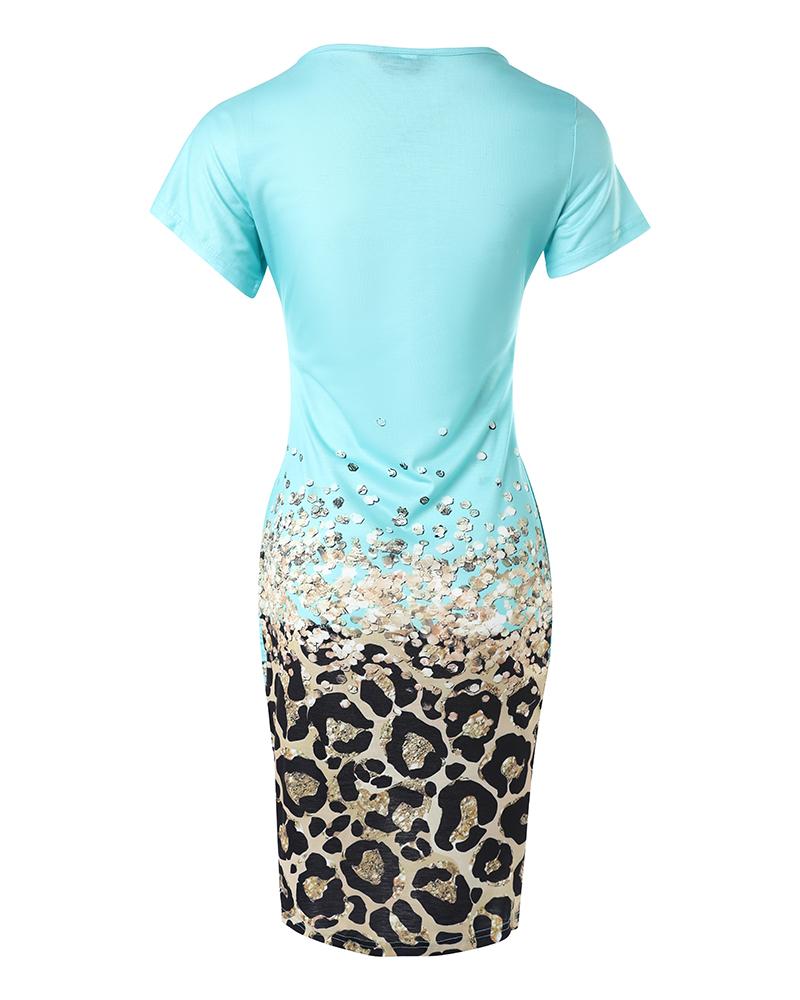 Faith Contrast Leopard Print Overlap Wrap Casual Dress