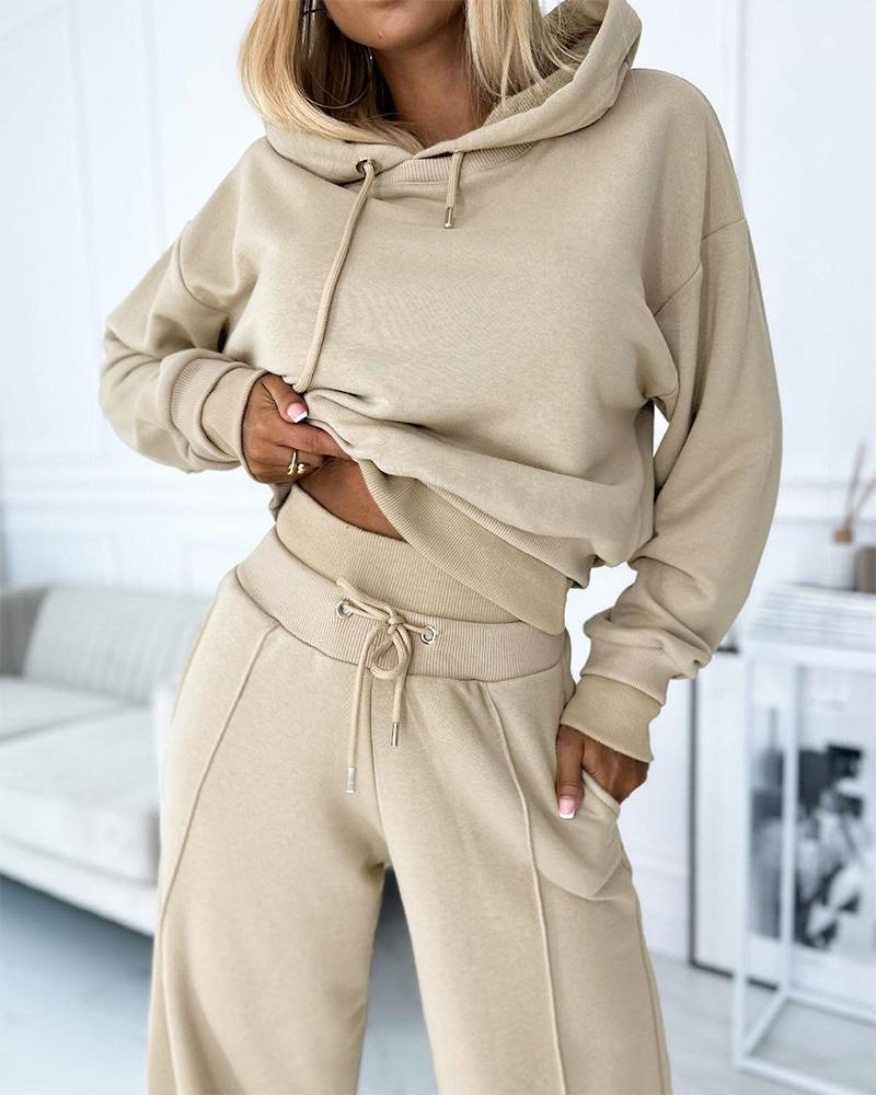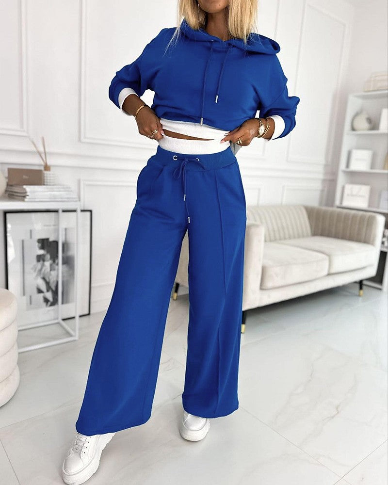 Fake Two Piece Hoodie & Wide Leg Pant Set
