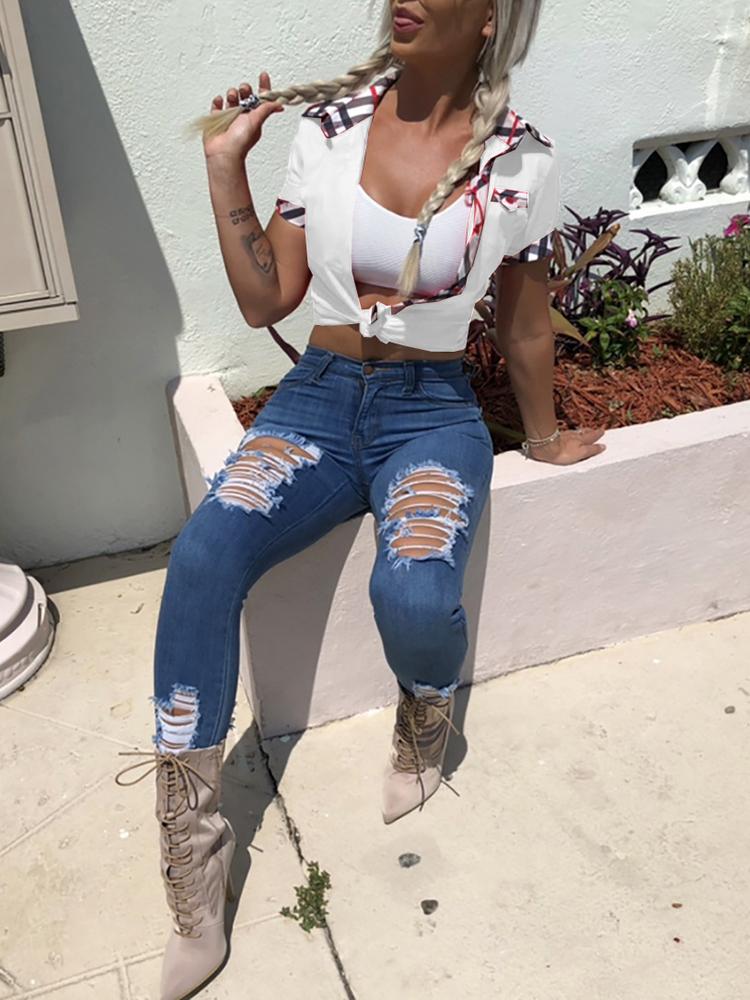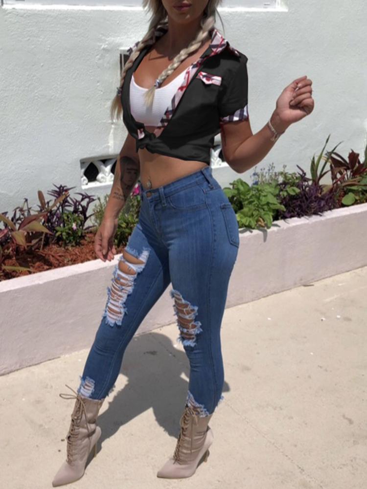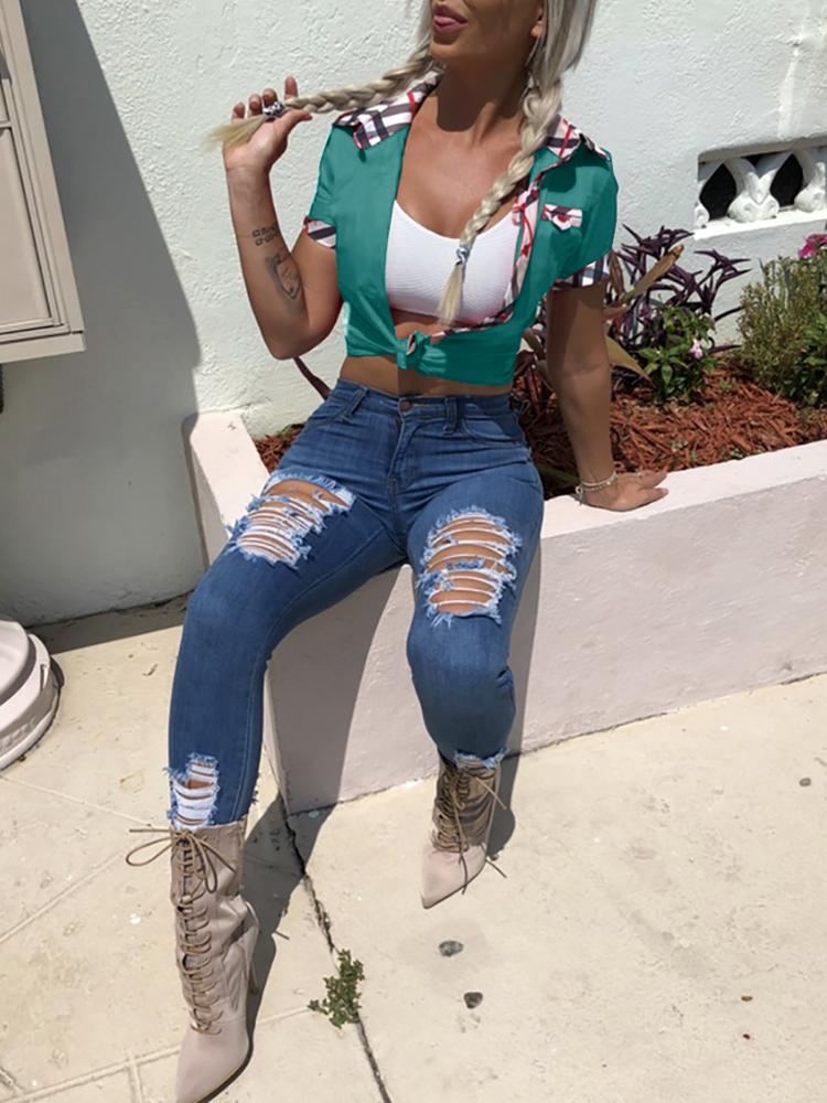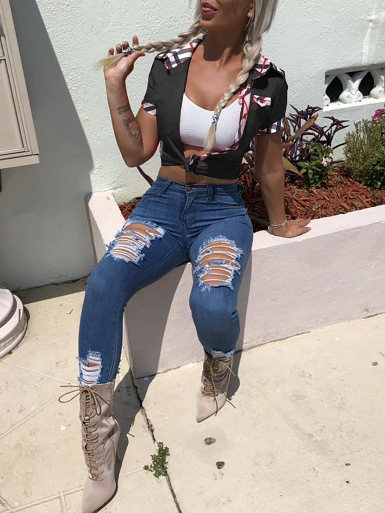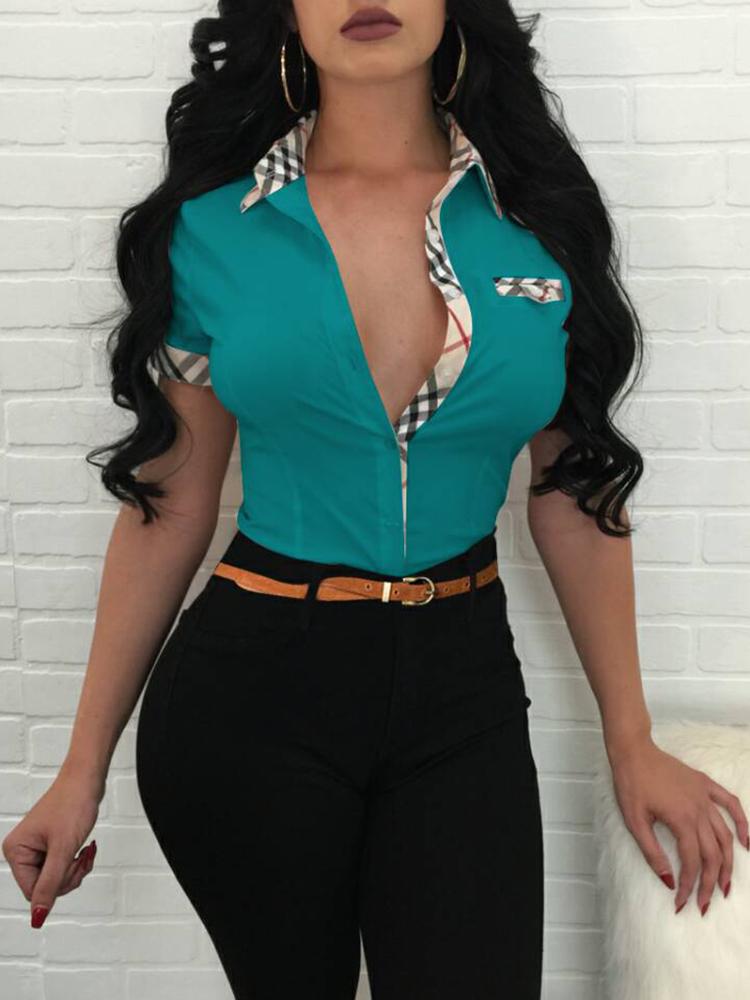 Fashion Buttoned Plaid Binding Shirt Blouse