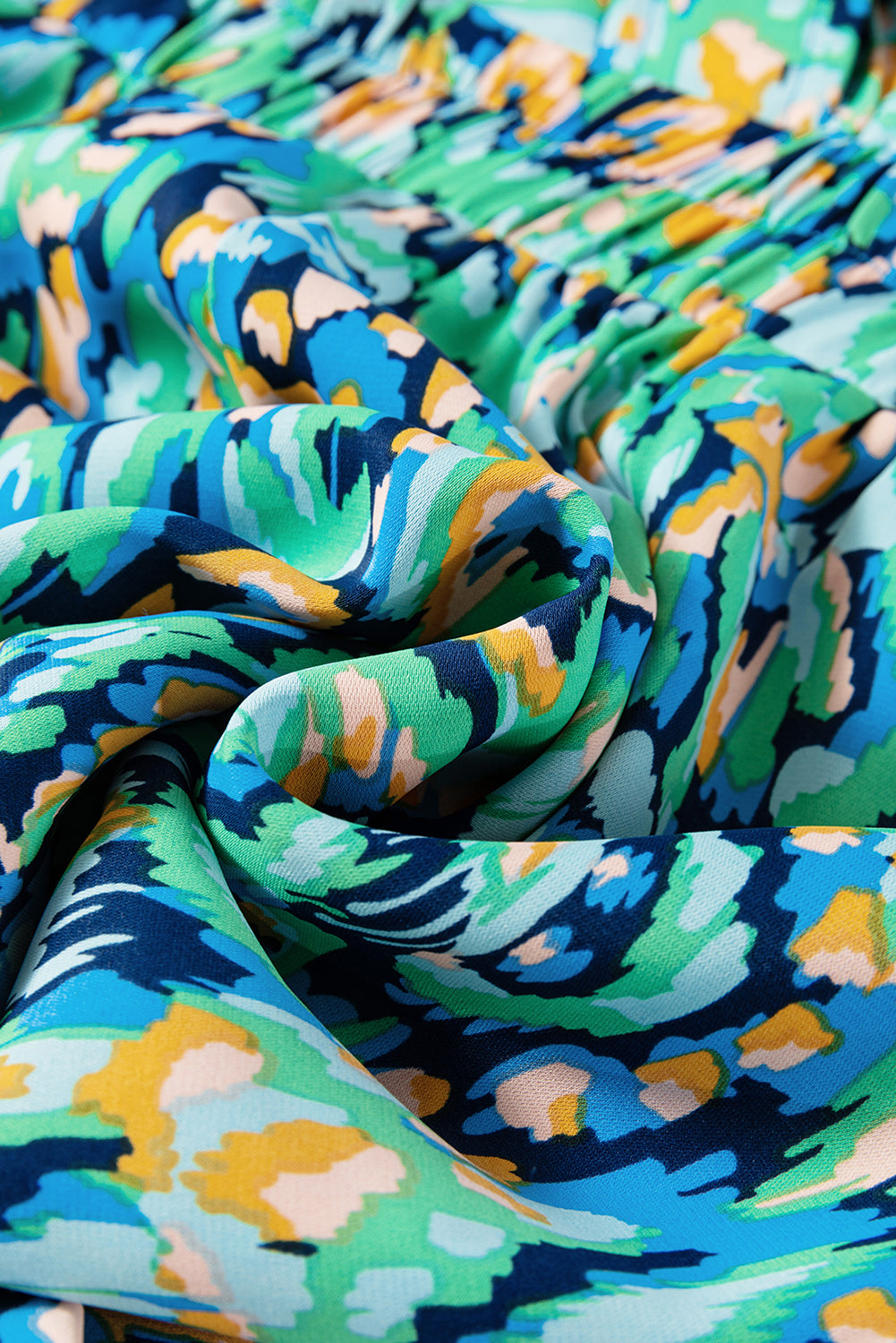 Green Abstract Print Puff Sleeve V Neck High Waist Romper