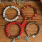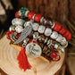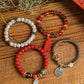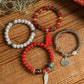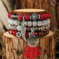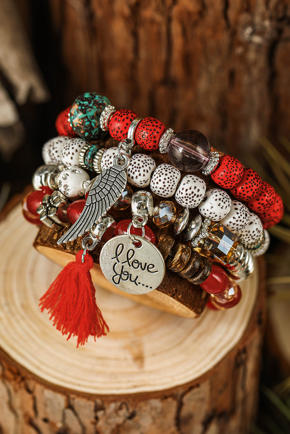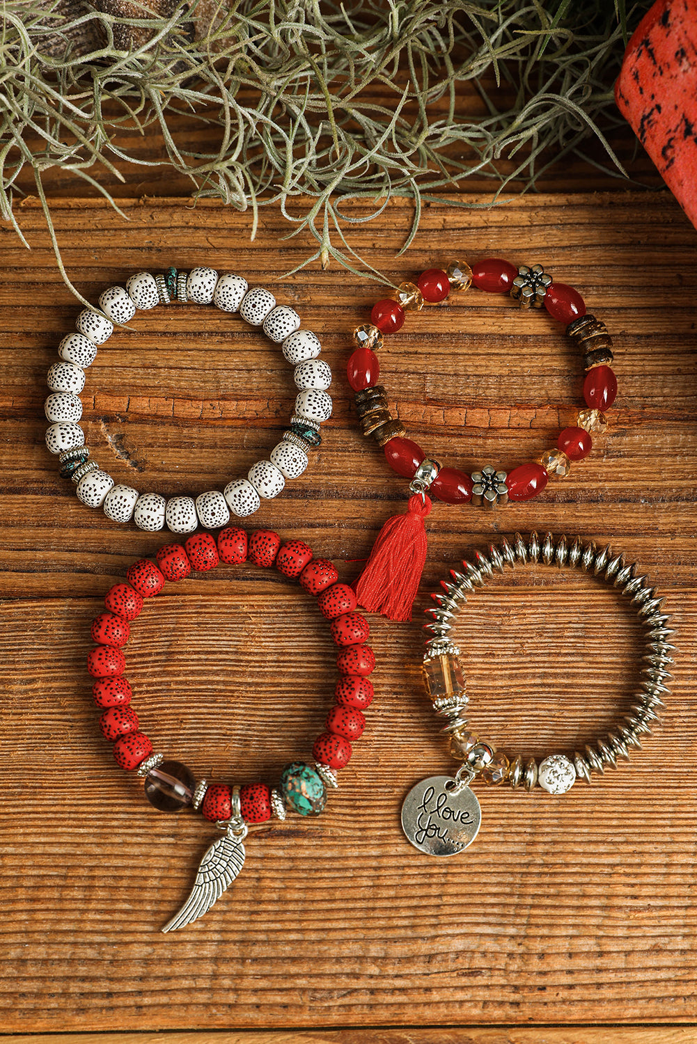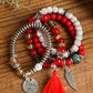 Fiery Red 4pcs Boho Disc Tassel Wing Pendant Beaded Bracelet Set