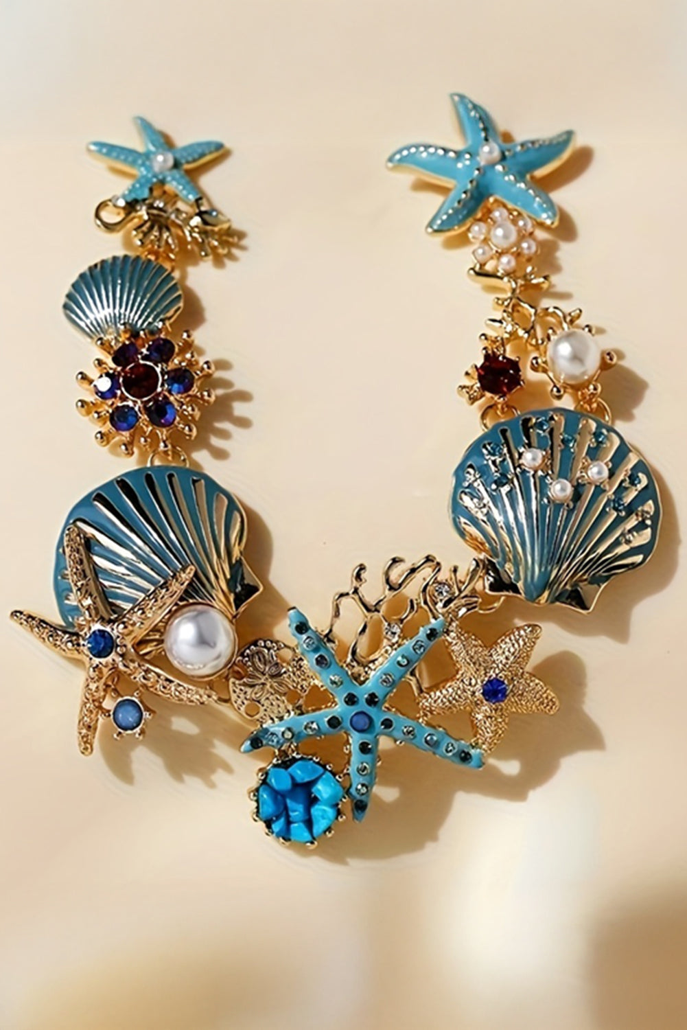Light Blue Seashell Starfish Pearl Decor Alloy Adjustable Necklace