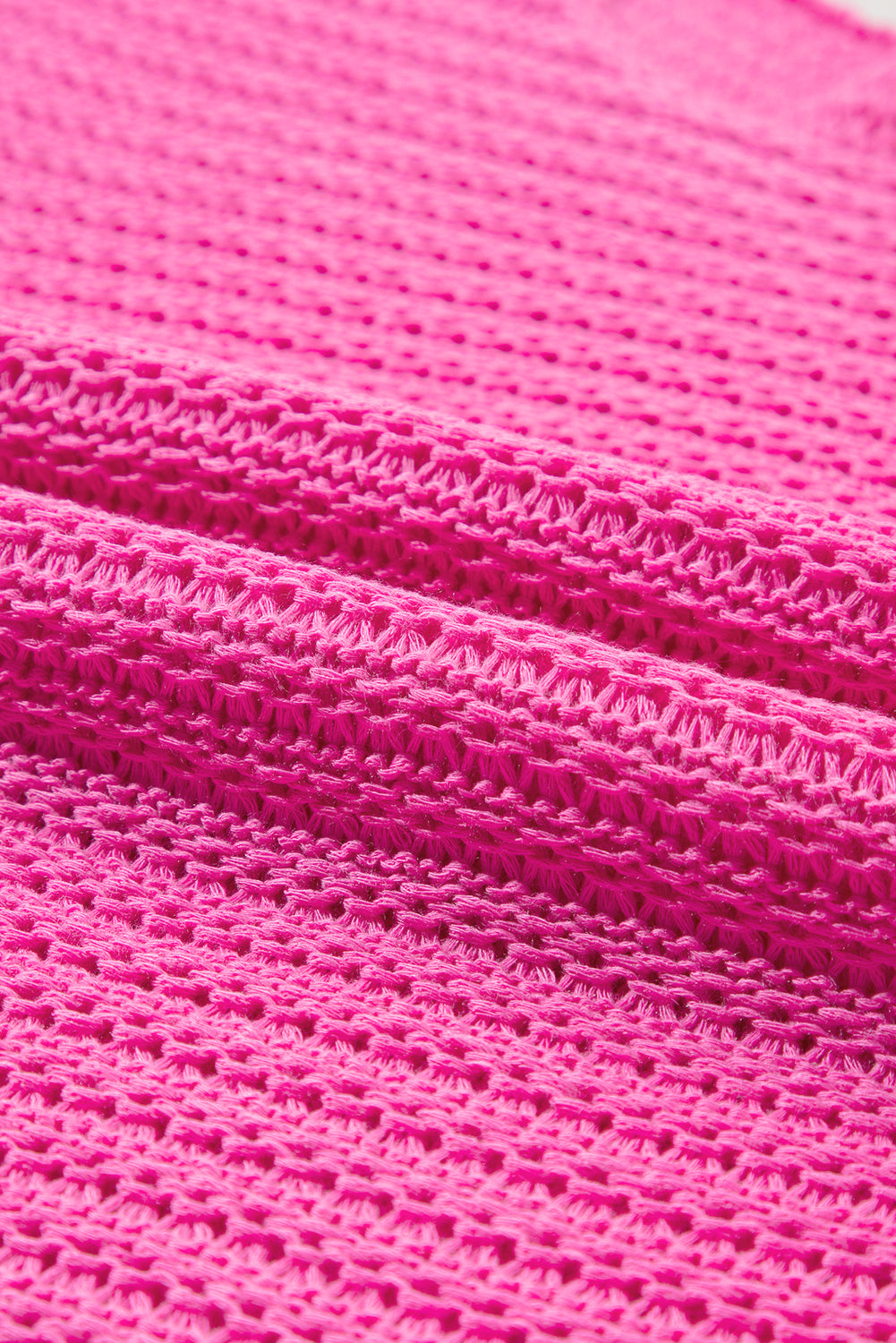 Pink Solid Loose Knit Short Dolman Sleeve Sweater