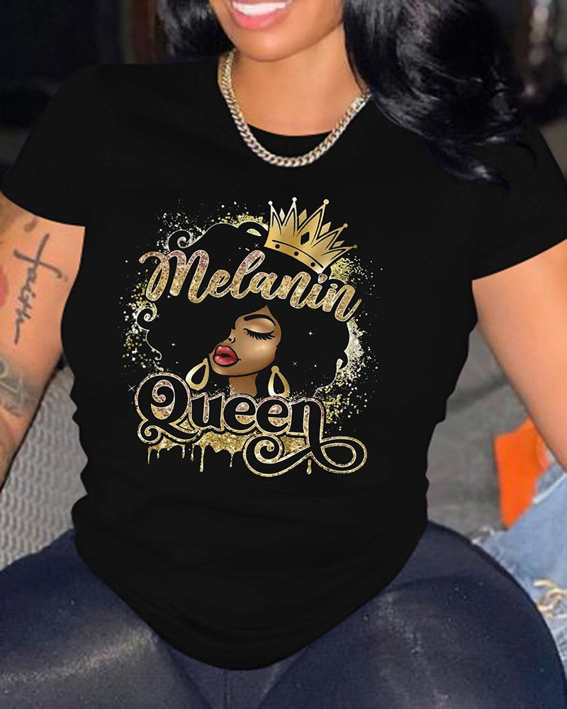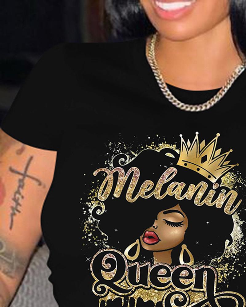 Figure Letter Print Short Sleeve Casual T shirt