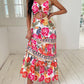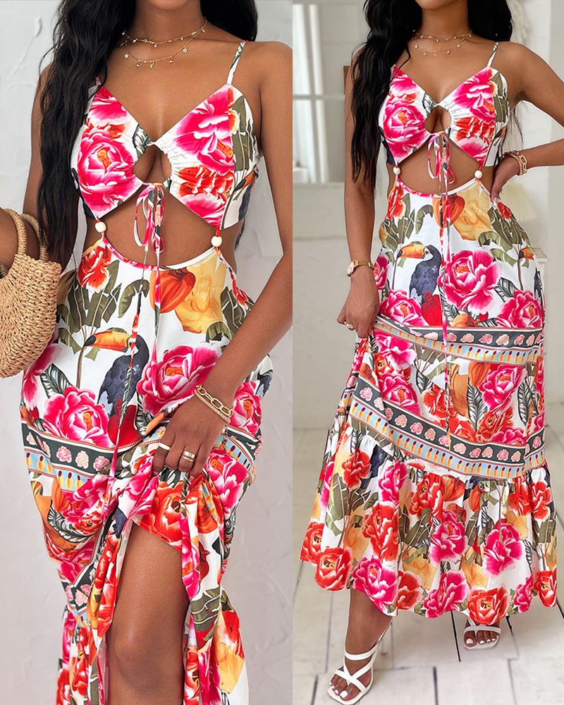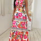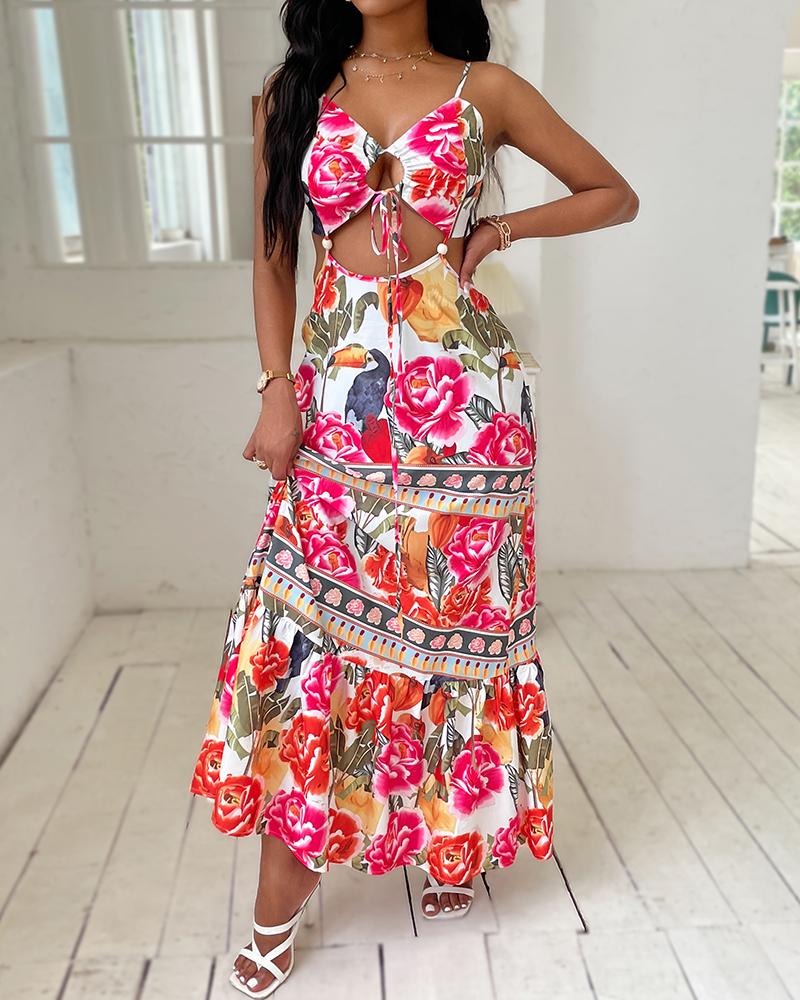Floral Animal Tropical Print Tied Detail Maxi Dress