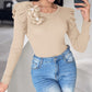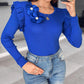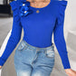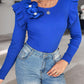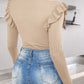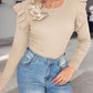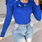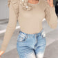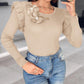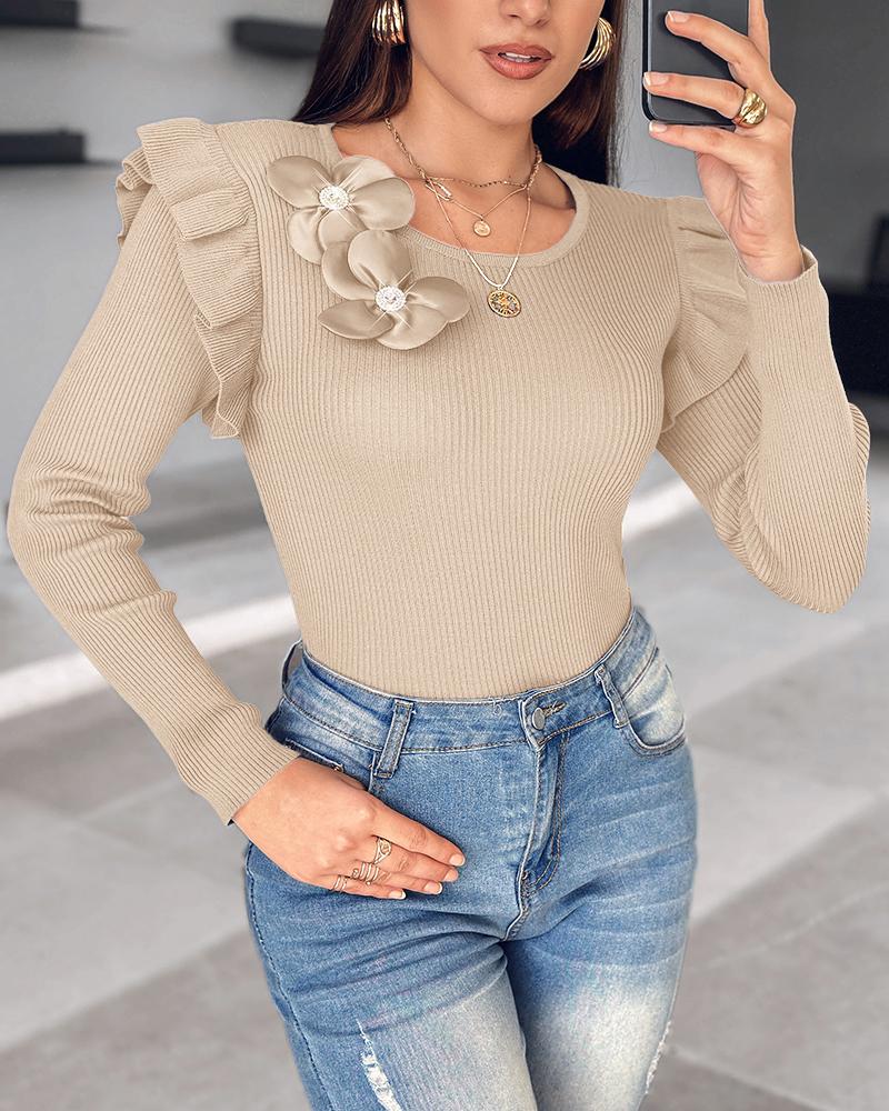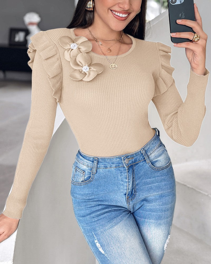 Floral Decor Ruffle Hem Long Sleeve Knit Sweater Top