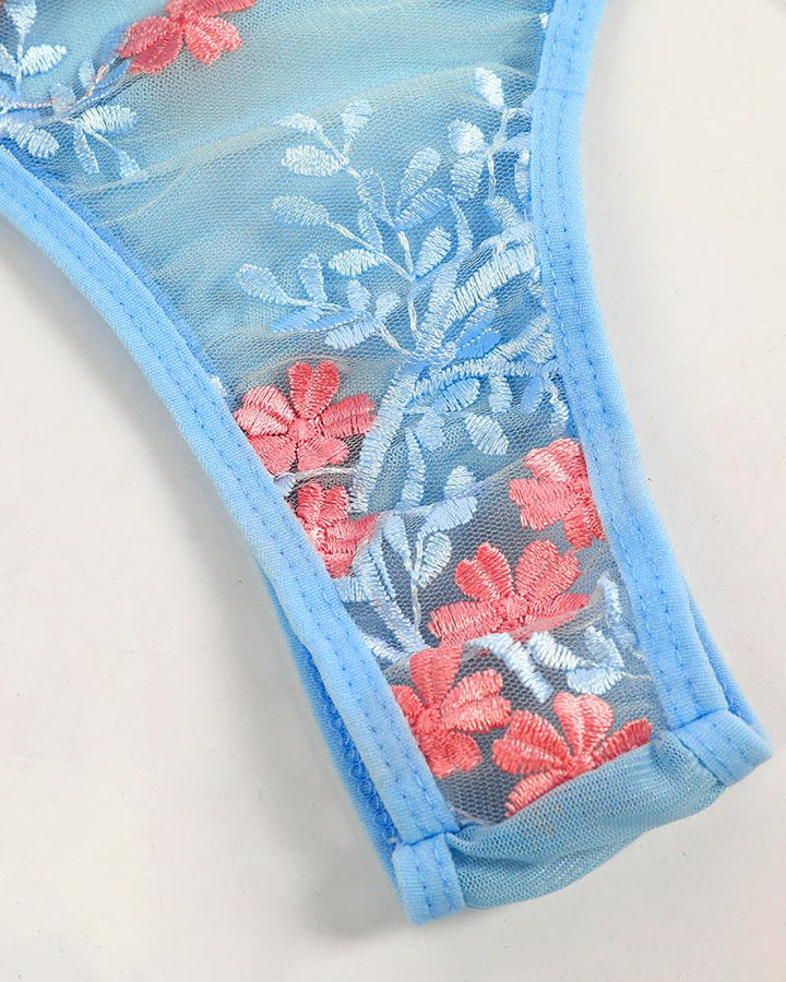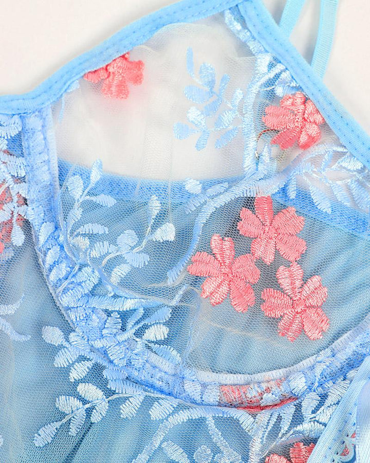 Floral Embroidery Sheer Mesh Lace up Skinny Teddy