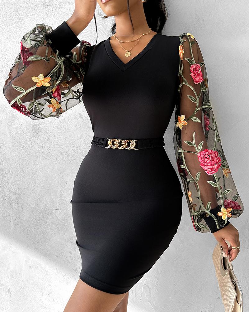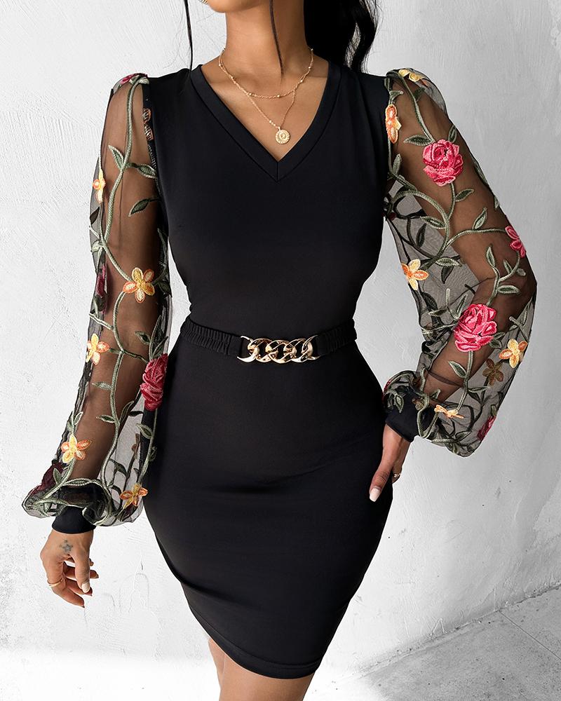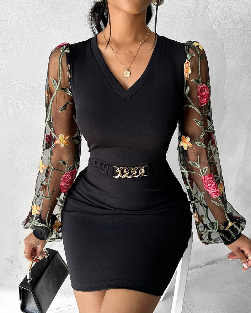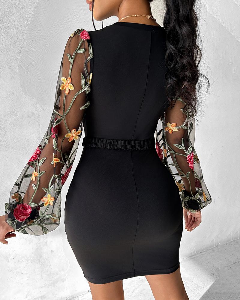 Floral Embroidery Sheer Mesh Patchwork Casual Dress
