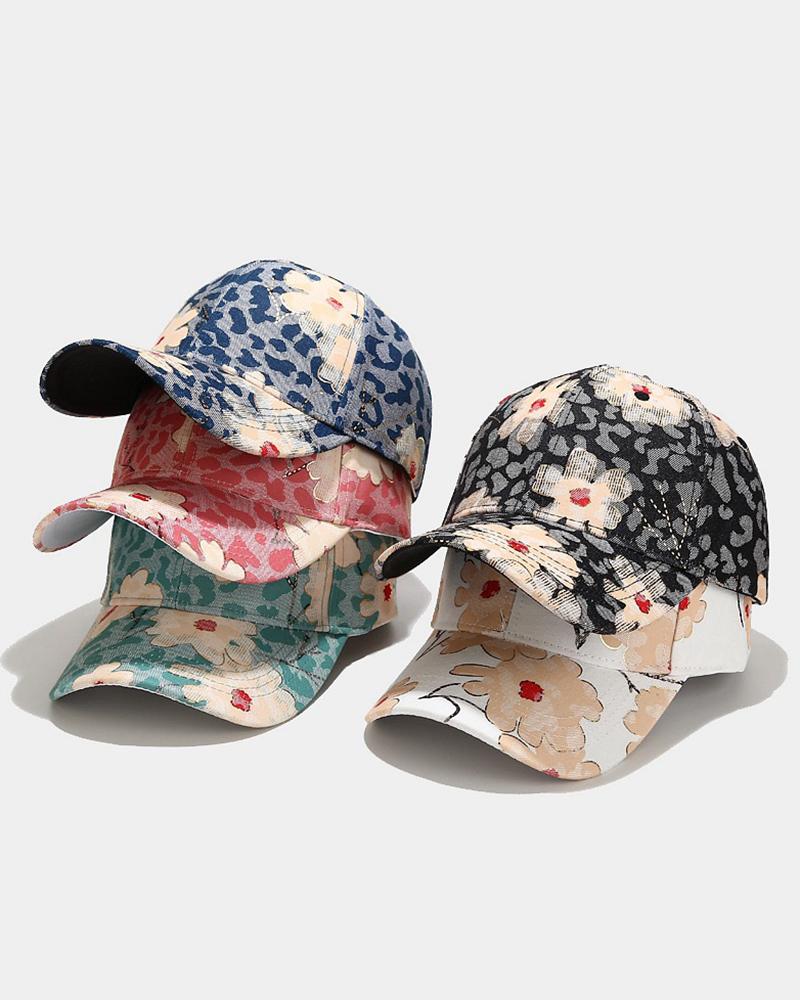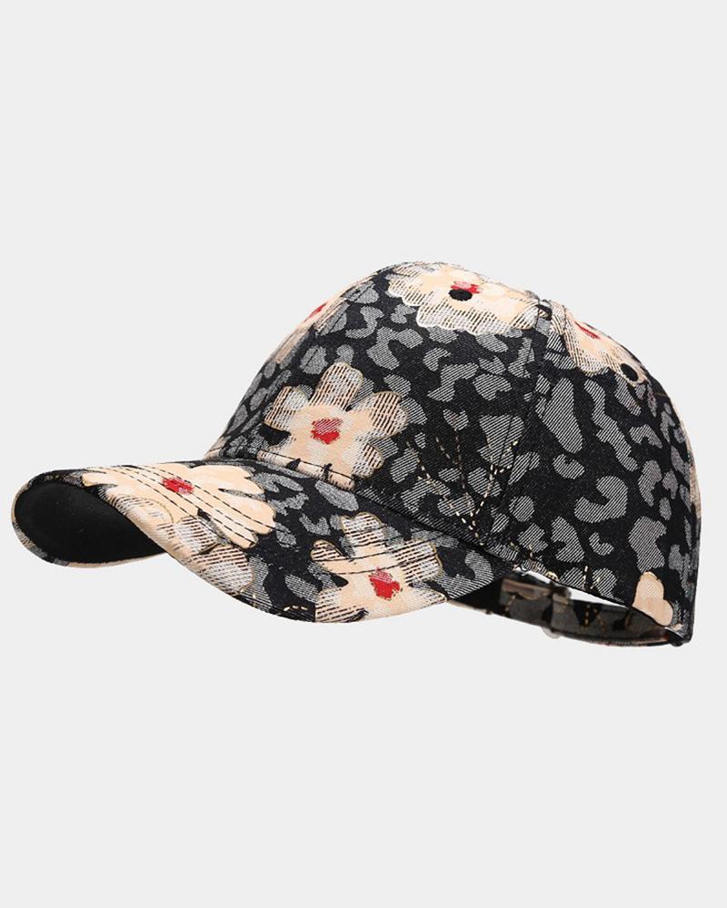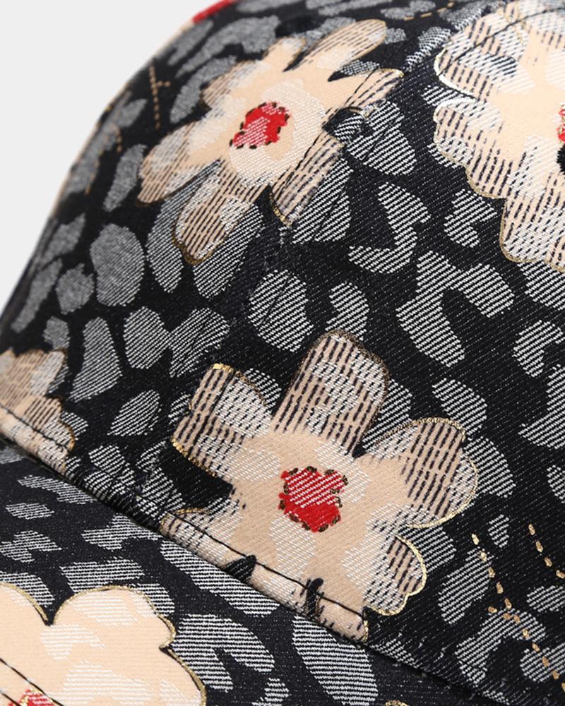 Floral Leopard Print Baseball Cap