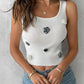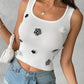 Floral Pattern Beaded Pearls Decor U Neck Knit Tank Top