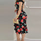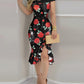 Floral Pattern Contrast Sequin Off Shoulder Bodycon Dress Sleeveless Ruffles Slit Party Midi Dress