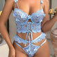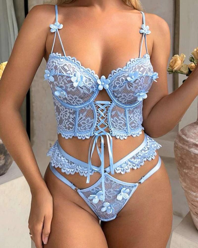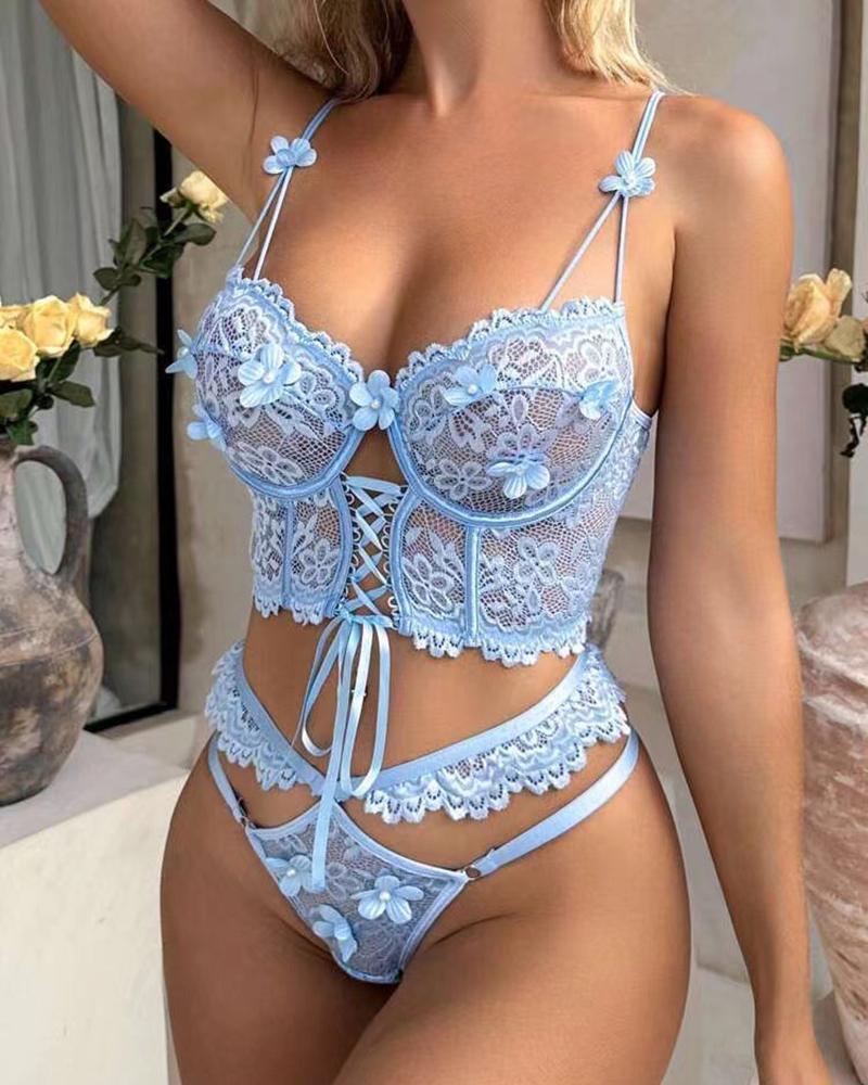 Floral Pattern Lace up Cutout Lace Lingerie Set