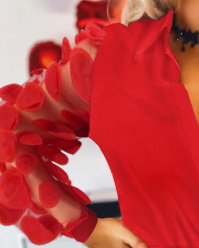 Floral Pattern Mesh Patch Buttoned Casual Dress