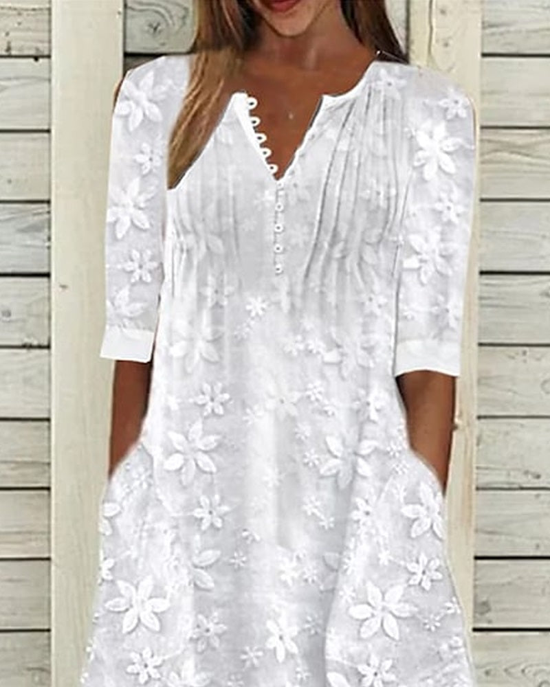 Floral Pattern Pocket Design Casual Dress