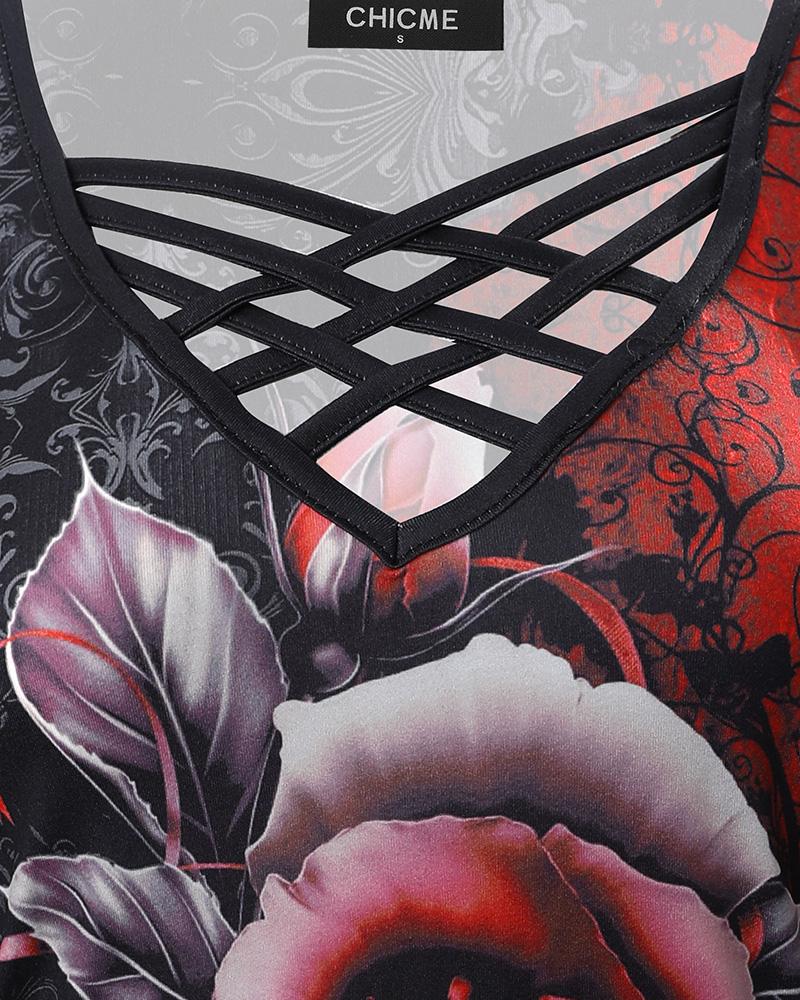 Floral Print Beaded Cold Shoulder Top