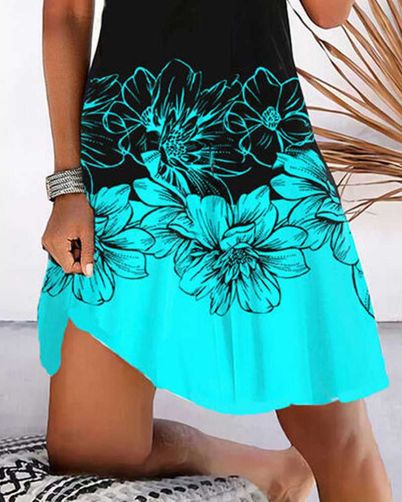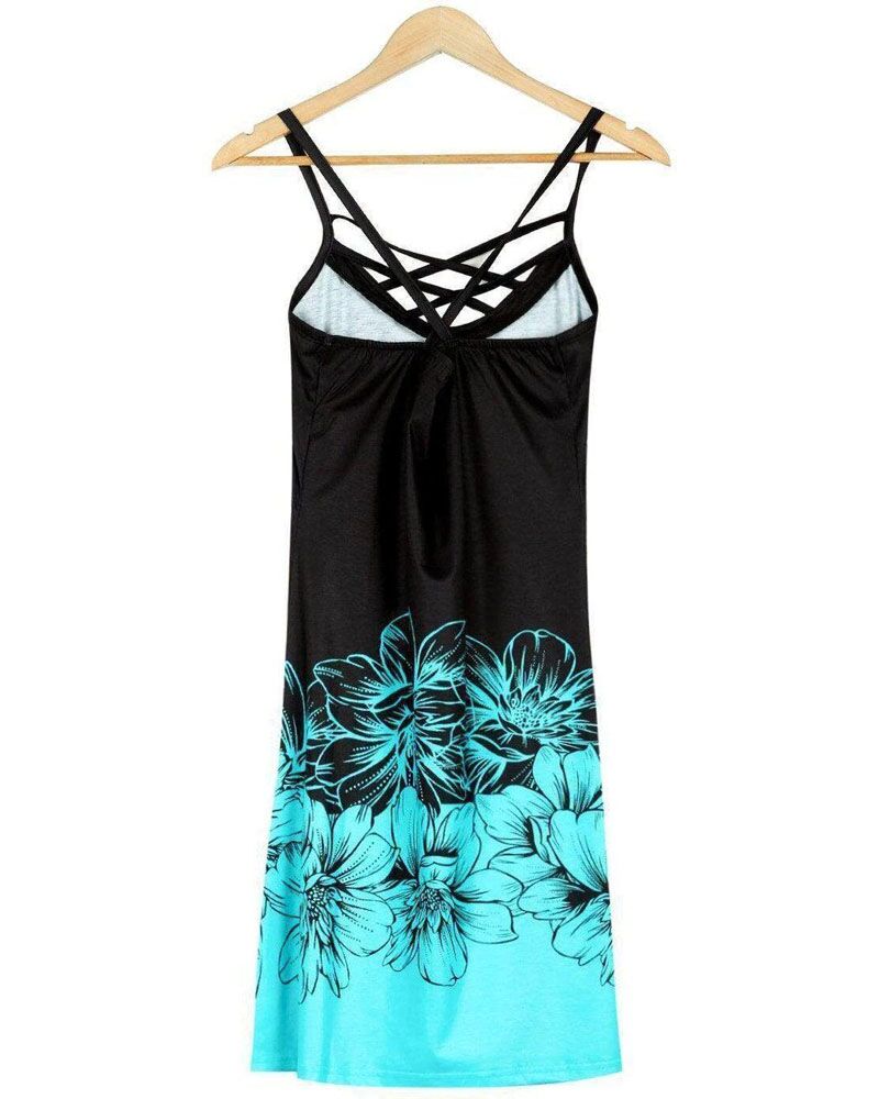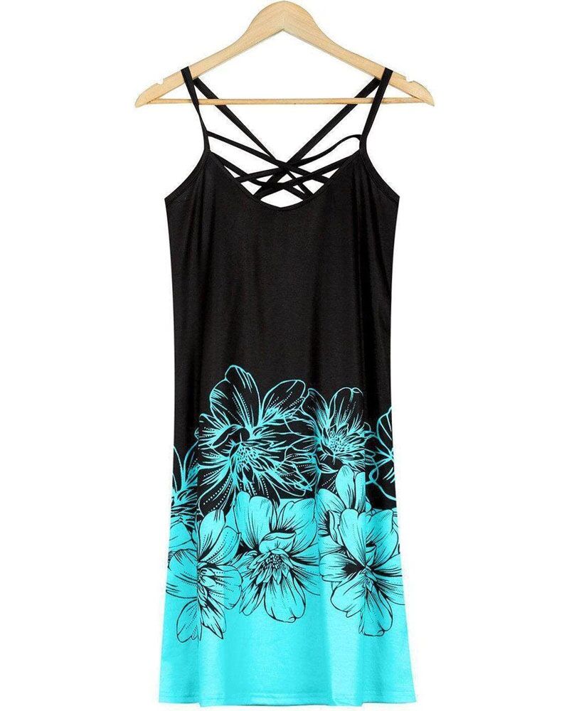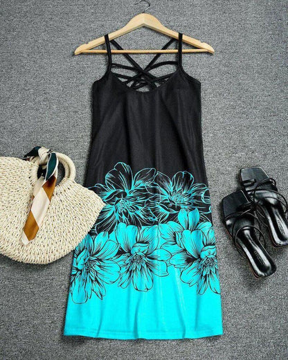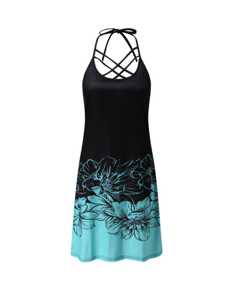 Floral Print Colorblock Criss Cross Halter Casual Dress