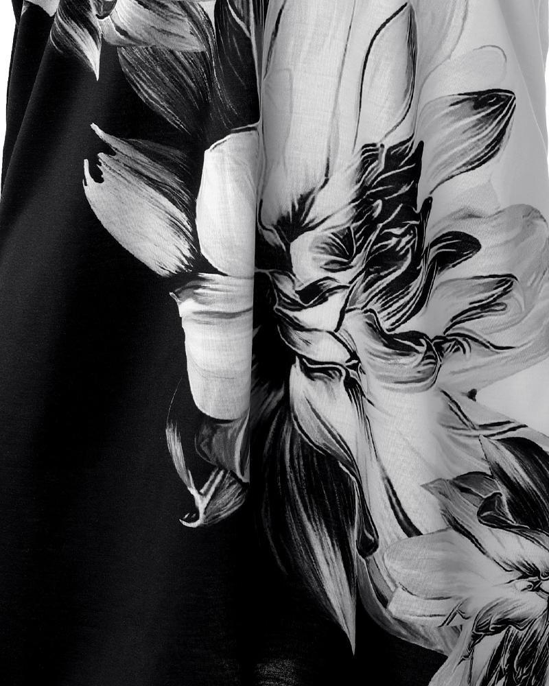 Floral Print Colorblock Lace Patch Cold Shoulder Top