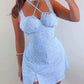 Floral Print Criss Cross V Neck Lace up Mini Dress Casual Shirred Slim Fit Dress
