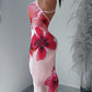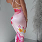 Floral Print Halter Criss Cross Backless Dress Sexy Slim Fit Bodycon Fishtail Dress
